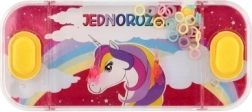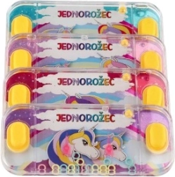 Szórakoztató zsebjáték gyerekeknek, amely fejleszti a türelmet és a koncentrációt. Két gomb segítségével megmozgatod a vízben lévő karikákat, és megpróbálod azokat a kis pöckökre ráhelyezni. Könnyű, hordozható és aranyos unikornis mintával – ideális utazáshoz és váróterembe is.