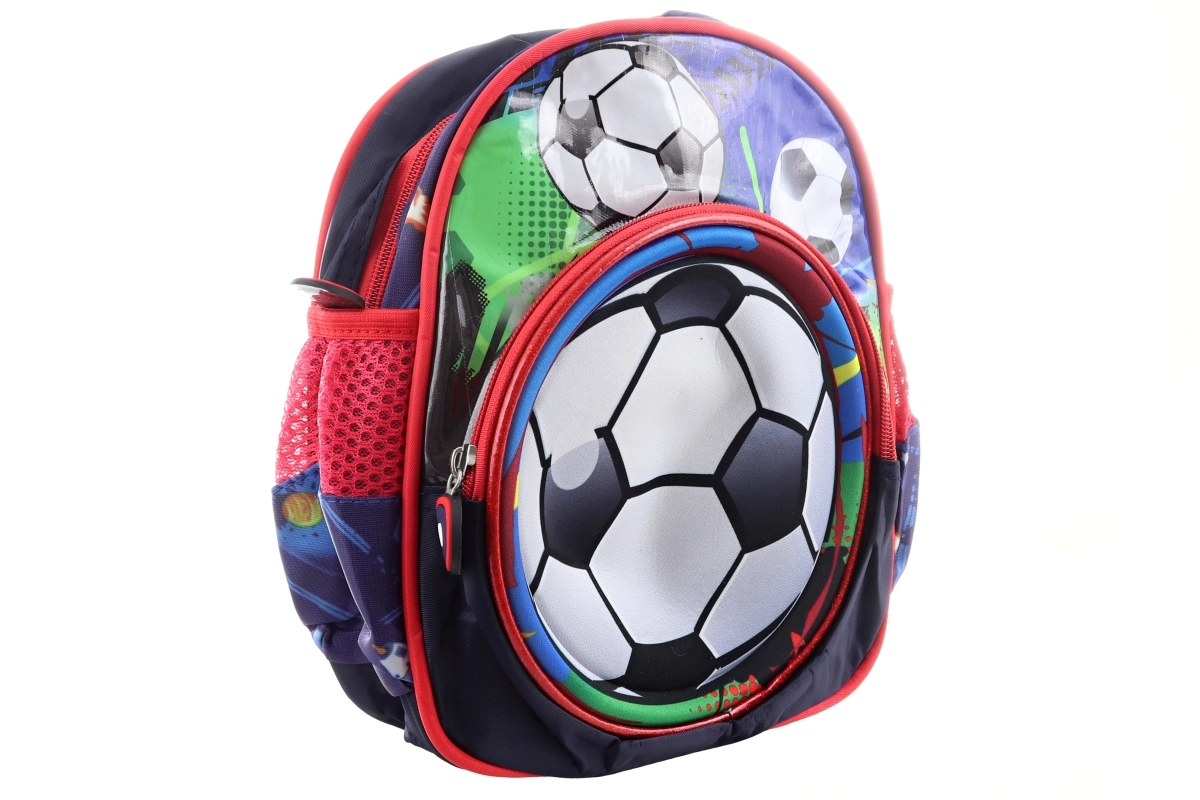 Stílusos gyerek hátizsák focis mintával, remek választás a kis sportolóknak. A formázott elülső rész vonzó megjelenést ad, míg a könnyű textil anyag kényelmes mindennapi használatot biztosít. Kompakt méreteinek köszönhetően elfér benne uzsonna, kulacs, tolltartó vagy kisebb játékok.
