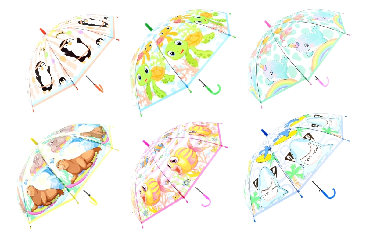 Játékos tengeri és szárazföldi állatmotívumok, amelyek minden lépést örömtelivé tesznek. Minden esernyő egyedi – a mintát raktárkészlet függvényében szállítjuk.