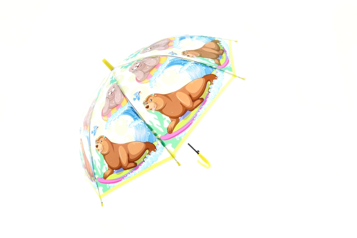 Ez a gyerek automata esernyő a játékos állatmintákkal minden esőt mókává varázsol. Kupolaformája jobb védelmet nyújt az eső ellen, az átlátszó panelek pedig kiváló kilátást biztosítanak az útra. Az ergonomikus J-fogantyú könnyen kézben tartható, a könnyű szerkezet pedig ideális a mindennapi használatra.