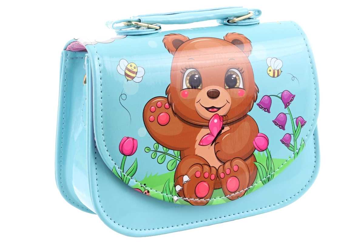 Ez a gyerek kézitáska a cuki macival és virágmintákkal kedvenc kiegészítő lesz sétákra, látogatásokra és ünnepségekre. A fényes, sima felületnek köszönhetően könnyen tisztítható, és mindig újszerűnek hat. A patentos záródás gyors és biztonságos csukást garantál.