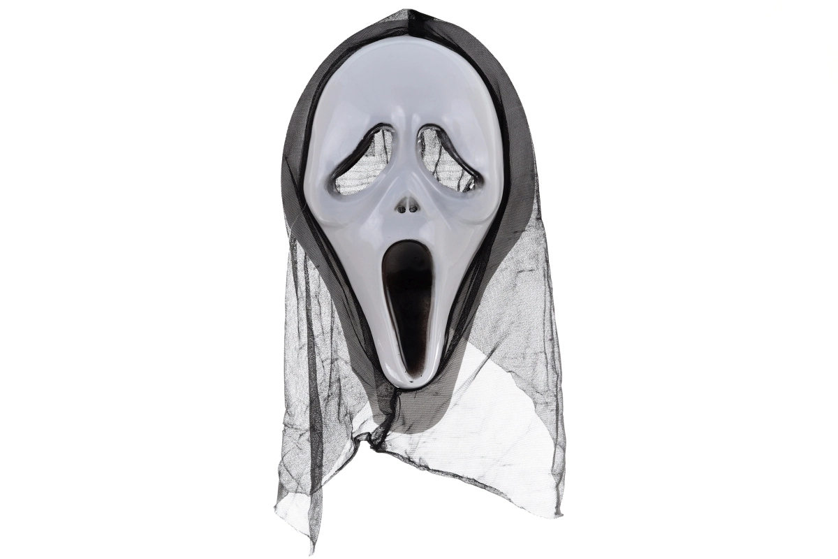Hátborzongatóan stílusos karneváli maszk a kultikus Sikoly motívum ihletésében minden bulira és Halloweenre. A műanyagból és poliészterből készült könnyű kialakítás kényelmes viseletet és egyszerű, fejre húzható felhelyezést biztosít. Ideális kiegészítő 3 éves kortól. Könnyű anyag, egyszerű felhelyezés, autentikus megjelenés.