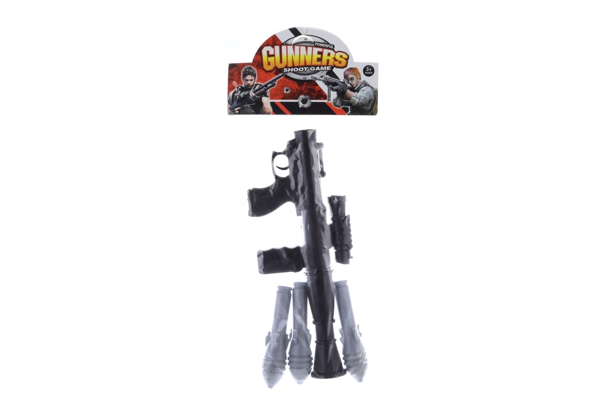 Szórakoztató műanyag rakétavető 3 éves kortól, egyszerű kezeléssel. A készlet tartalmaz 3 puha rakétát, amelyeket nyomással be kell tolni a fegyverbe, majd a ravasz meghúzásával kilőhetők. Ideális biztonságos játékhoz kertben és otthon egyaránt.