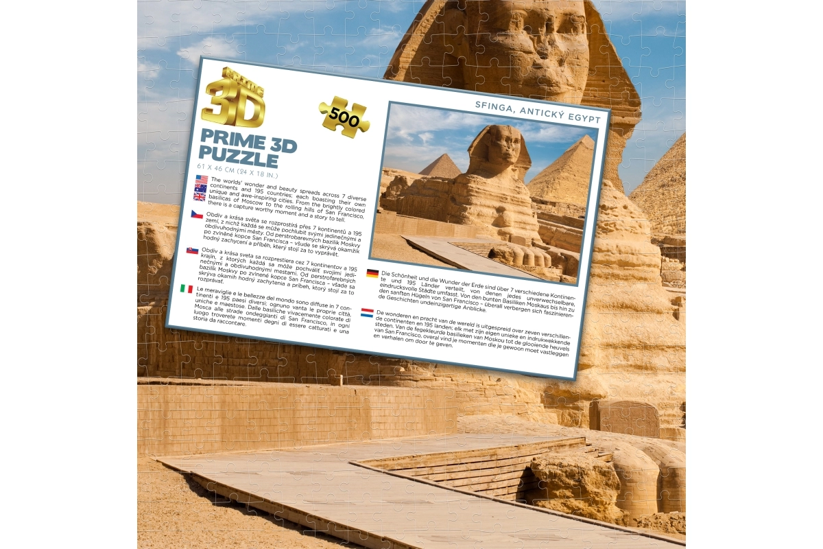 Lépjen be a fáraók birodalmába, és rakja ki a legendás Szfinxet otthonában. Ez a minőségi 3D kirakó ötvözi a szórakozást, az iskolázottságot és a finommotorika fejlesztését. Az 500 masszív darabnak köszönhetően ideális gyerekeknek és felnőtteknek, akik szeretik a kihívásokat és a történelmi motívumokat.