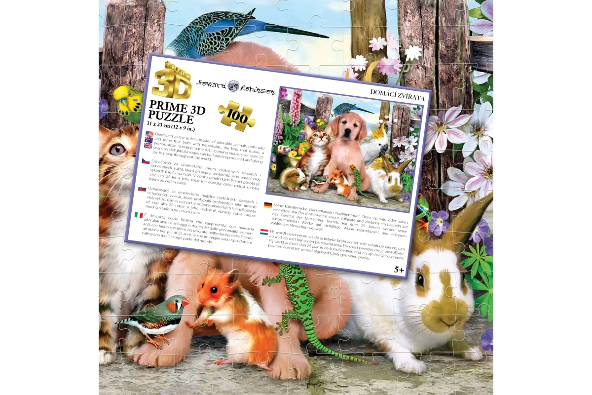 Fedezze fel a szórakoztató háziállatokat ábrázoló 3D puzzle-t, amely fejleszti a logikus gondolkodást, a finommotorikát és a türelmet. A csomag 100 darabot tartalmaz, az elkészült kép mérete 31 × 23 cm, és 5 éves kortól ideális a gyerekeknek.