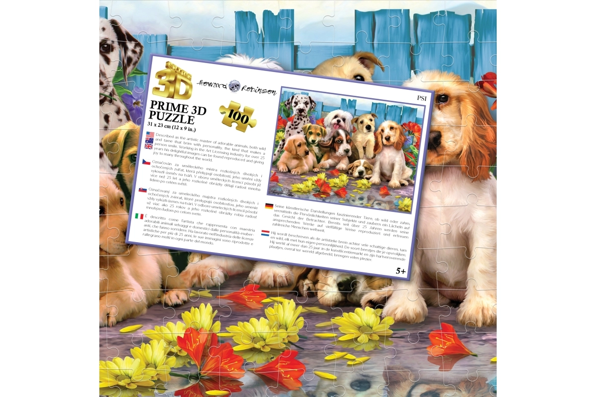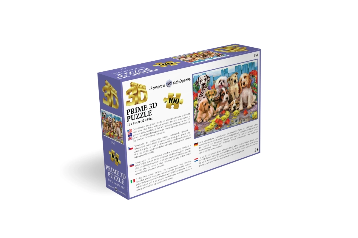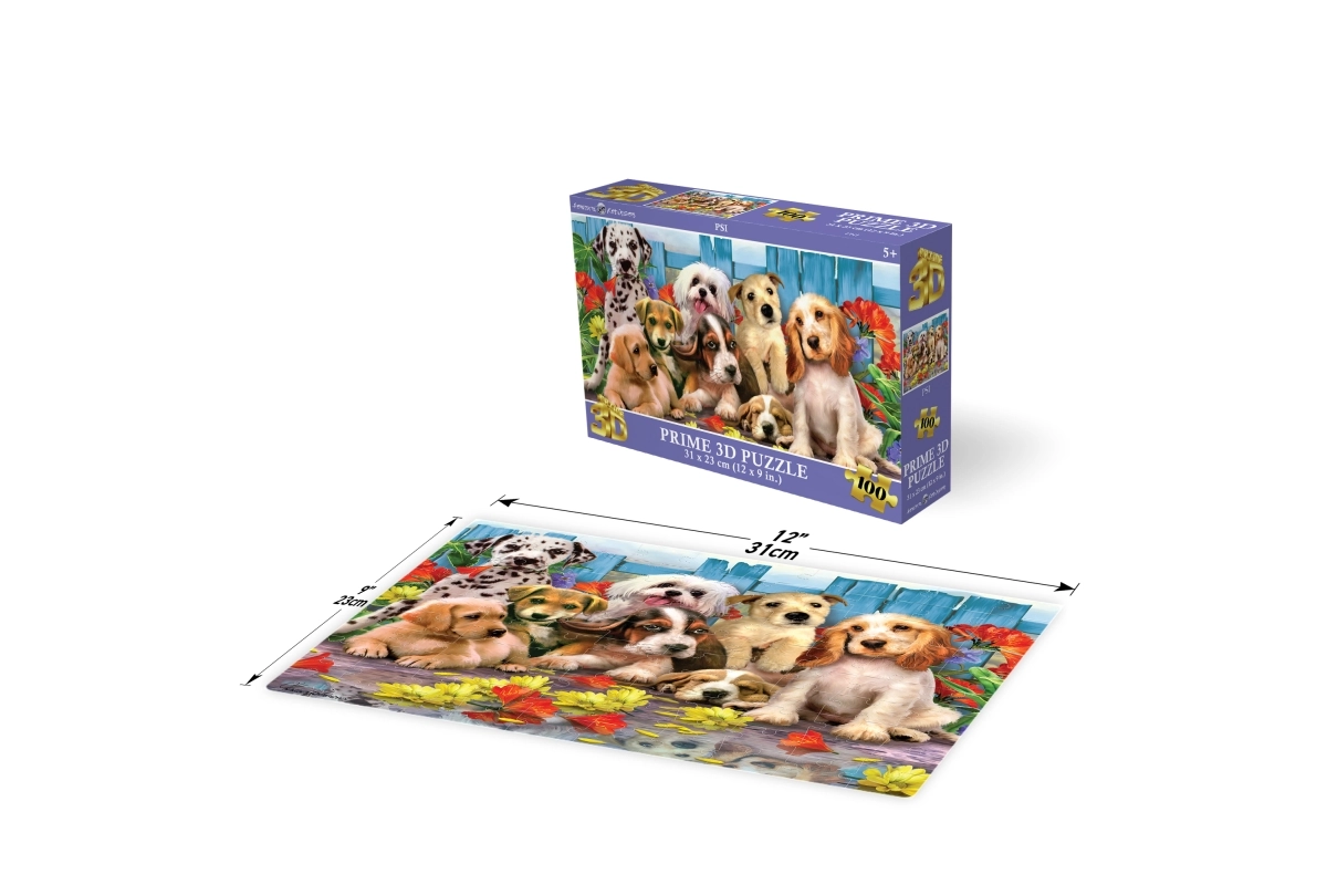 Ez a minőségi 3D puzzle a bájos kölyökkutyák motívumával lenyűgöző lentikuláris 3D hatást kínál, amely életre kelti minden egyes darabját. A 100 darabnak köszönhetően kiváló választás kezdőknek és kissé haladóknak is, kellemes szórakozást és koncentrációt biztosítva.