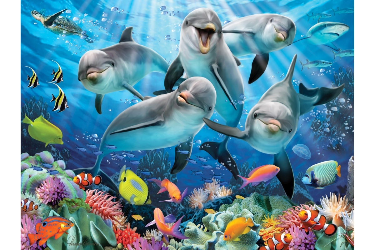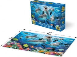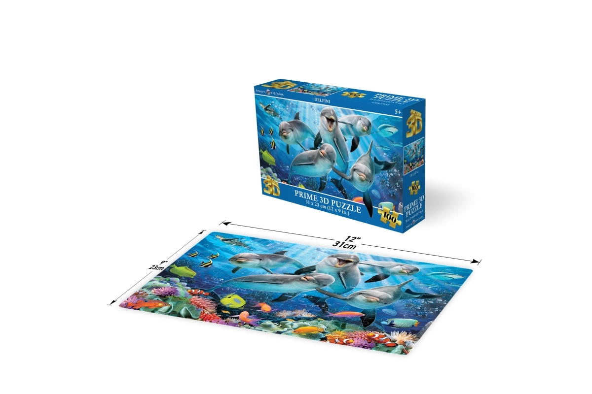 Fedezd fel a szórakozást, amely fejleszti a türelmet, a koncentrációt és a finommotorikát. Ez a delfin témájú 3D puzzle színes víz alatti jelenetet hoz el, amely a lentikuláris 3D hatásnak köszönhetően plasztikus és dinamikus. A kész kép kompakt, 31 × 23 cm-es méretével kiválóan alkalmas kiállításra a gyerekszobában.