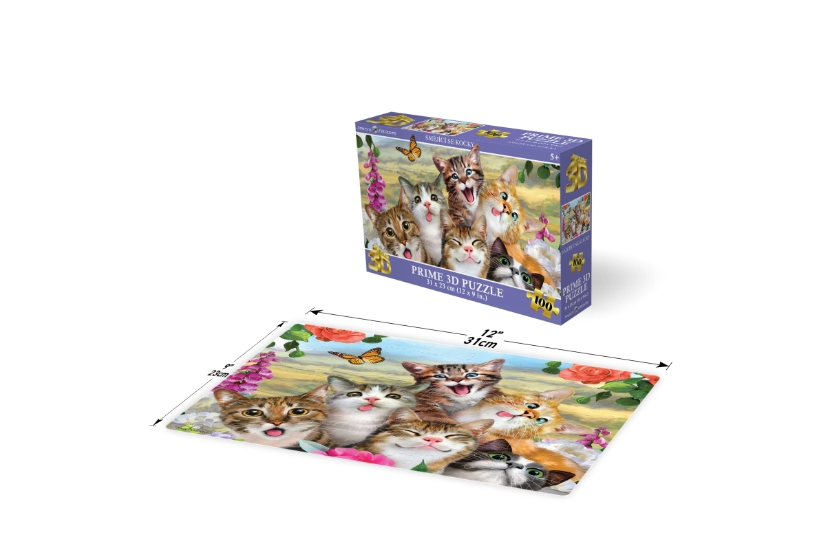 Fedezze fel a szórakoztató 3D puzzle-t mosolygó macskák motívummal, amely örömet szerez kicsiknek és nagyoknak egyaránt. A csomag 100 darabot tartalmaz, 5 éves kortól ajánlott. Összeállítás után egy minőségi kép készül 31 × 23 cm méretben.