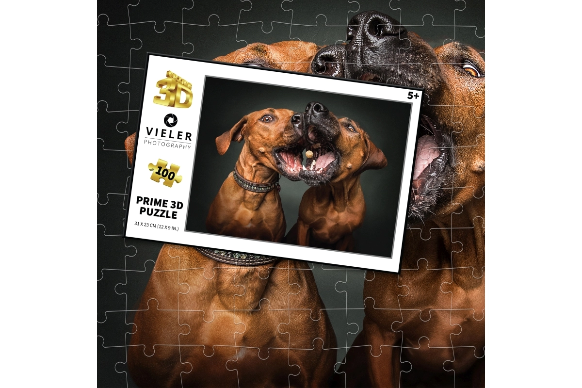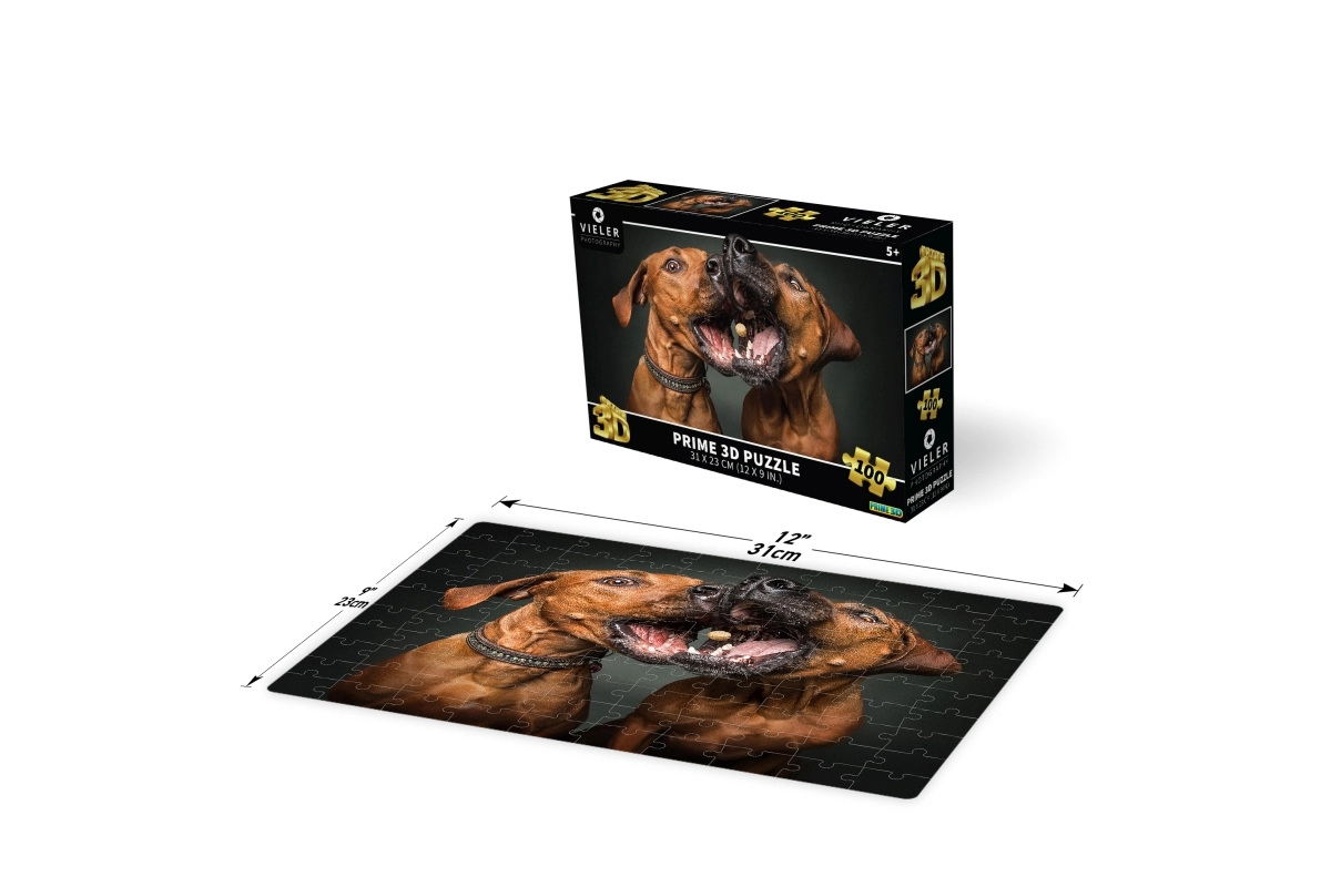 Fedezze fel a szórakozást kicsiknek és nagyoknak ezzel a színes, kutyás mintájú 3D kirakóval. A csomag 100 darabot tartalmaz, amelyeket összeillesztve egy 31 × 23 cm méretű képet kapunk. Ideális 5 éves kortól, türelem, logika és finommotorika fejlesztésére.