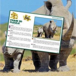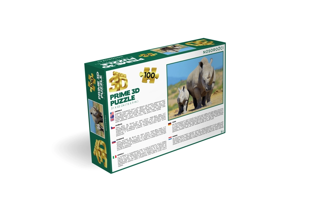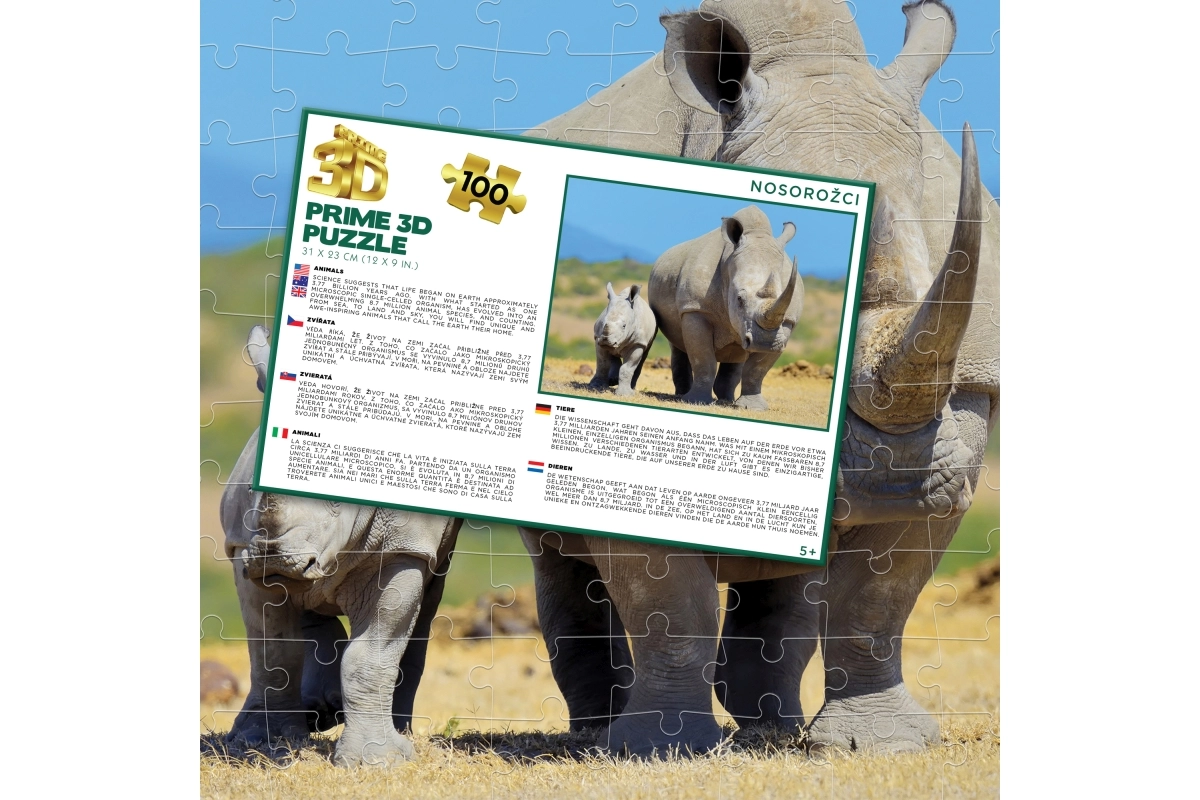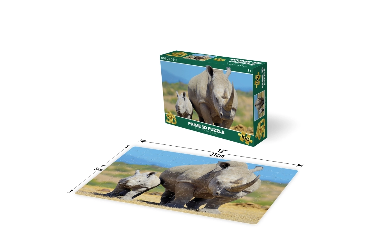 Fedezze fel a szórakoztató és oktató jellegű 3D rinocérosz témájú puzzle-t 5 éves kortól. A csomag 100 darabot tartalmaz, az összeállítás után egy lenyűgöző, 31 × 23 cm méretű kép jön létre. Ideális a finommotorika, a türelem és a logikus gondolkodás fejlesztéséhez.