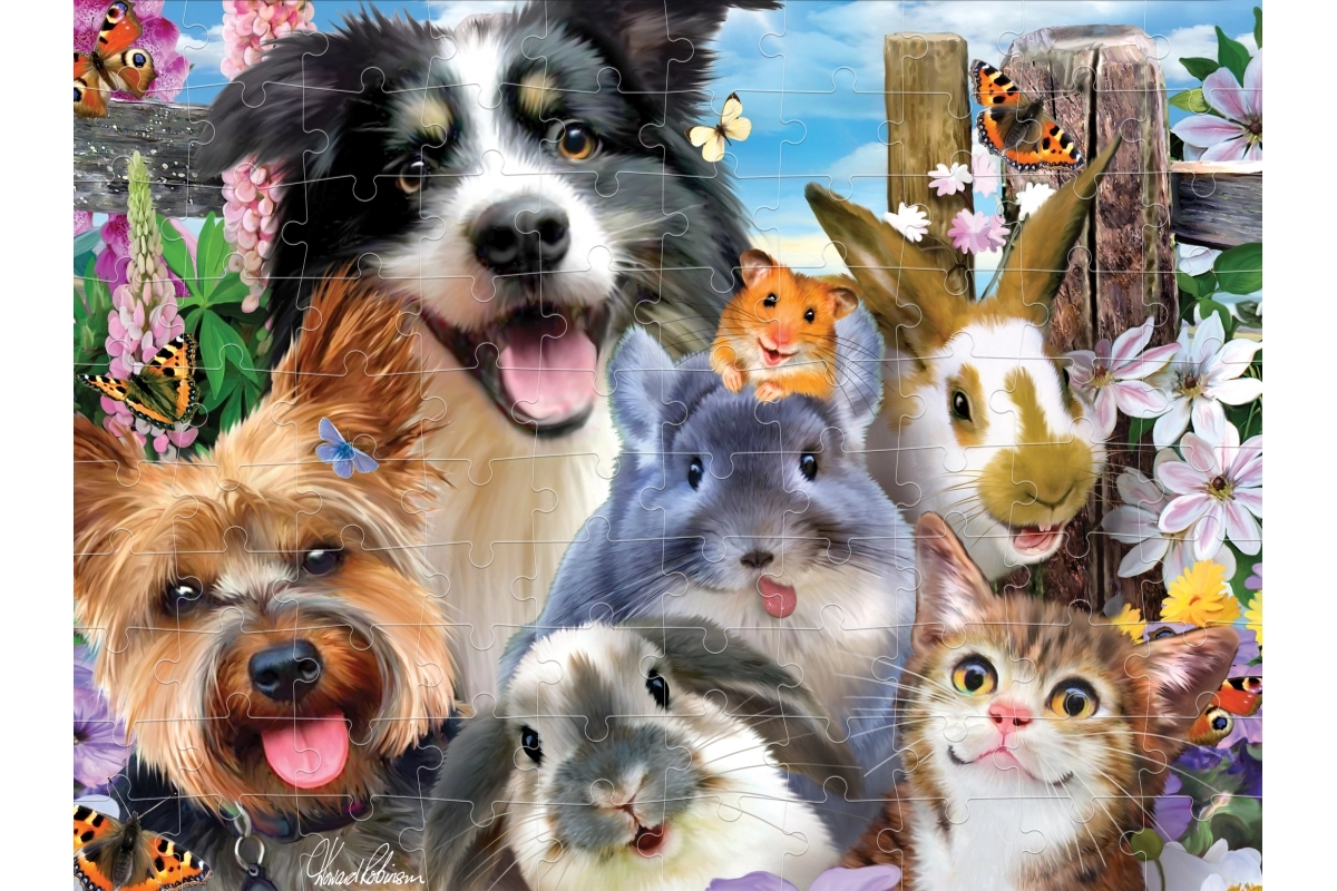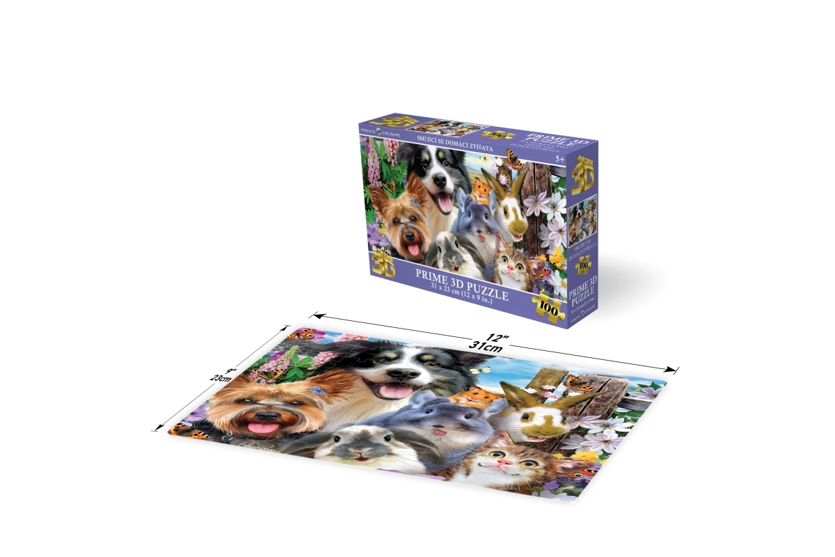 Ez a színes 3D puzzle mosolygó háziállatokkal remek választás első nagyobb kirakónak. A 100 darabnak köszönhetően ideális kombinációja a szórakozásnak és a tanulásnak – a gyerekek gyakorolják a szem–kéz koordinációt és a koncentrációt, miközben élvezik a kedvelt állatkák vidám illusztrációját.