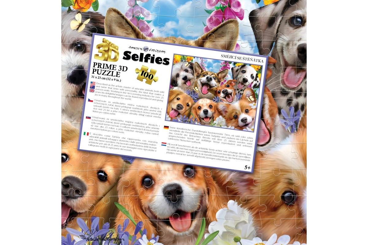 Szórakoztató 3D puzzle bájos, mosolygó kiskutya motívummal, amely örömet szerez a kis állatkedvelőknek. 100 darabot tartalmaz, támogatja a finommotorika, a türelmet és a térbeli képzelőerőt fejlesztését. Összeállítás után 31 × 23 cm méretű kép készül, 5 éves kortól ajánlott.