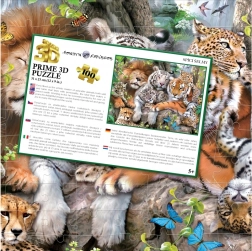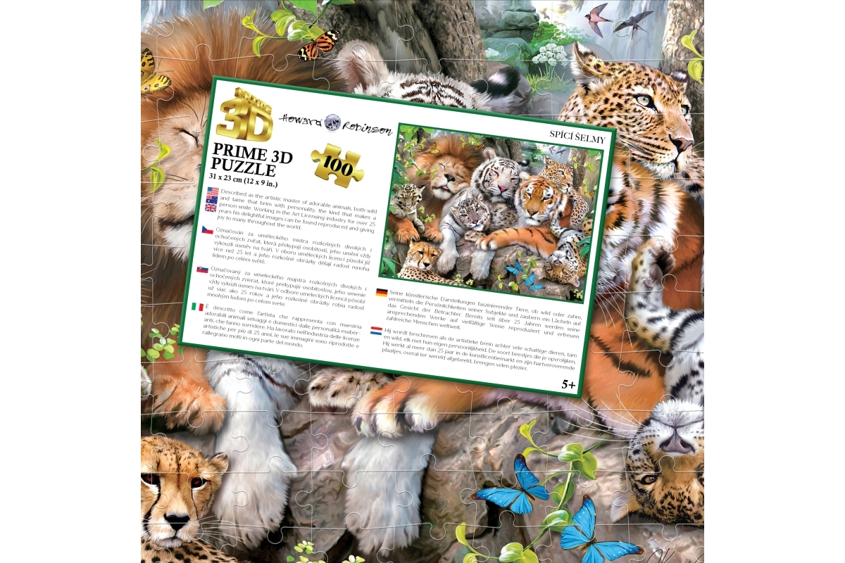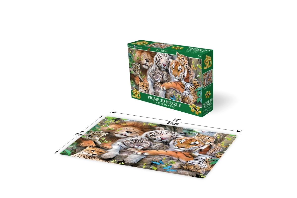 Fedezze fel a szórakoztató 3D puzzle-t alvó ragadozókkal, amely örömet szerez kicsiknek és nagyoknak. A csomag 100 darabot tartalmaz, és ideális 5 éves kortól. Összeállítás után egy gyönyörű, 31 × 23 cm méretű kép készül, amely fejleszti a logikát, a türelmet és a finommotorikát.