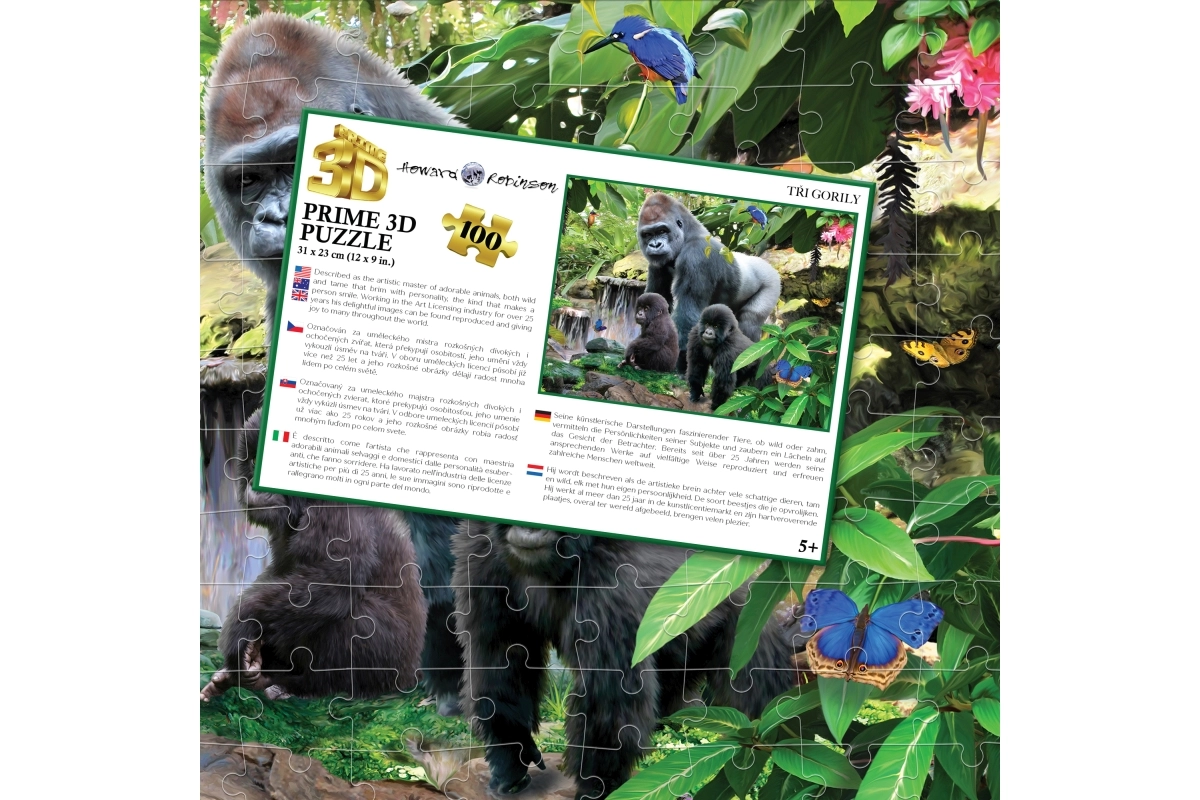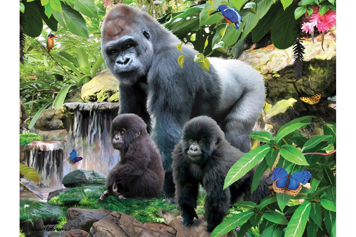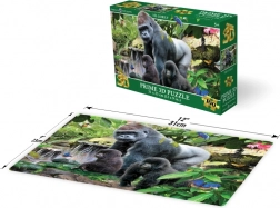 Fedezze fel a vadon világát a lenyűgöző 3D kirakóval, gorillacsalád témával. A lentikuláris hatásnak köszönhetően a kép kiemelkedik a síkból, és magával ragadó vizuális élményt nyújt, amely a gyerekeket és a felnőtteket egyaránt elbűvöli. A kész, 31 × 23 cm-es formátum remek dekoráció a gyerekszobába.