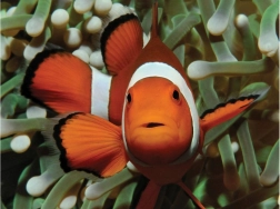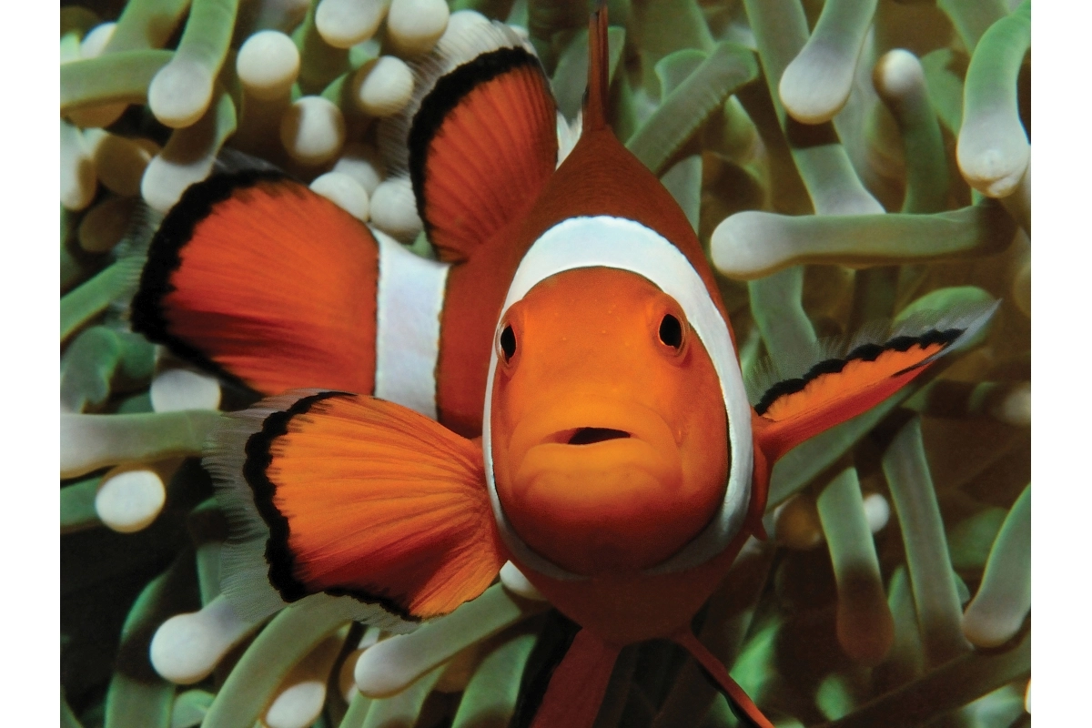 A természetes élőhelyén, tengeri rózsák között úszó bohóchal elragadja a természet és a tengeri élőlények kedvelőit.