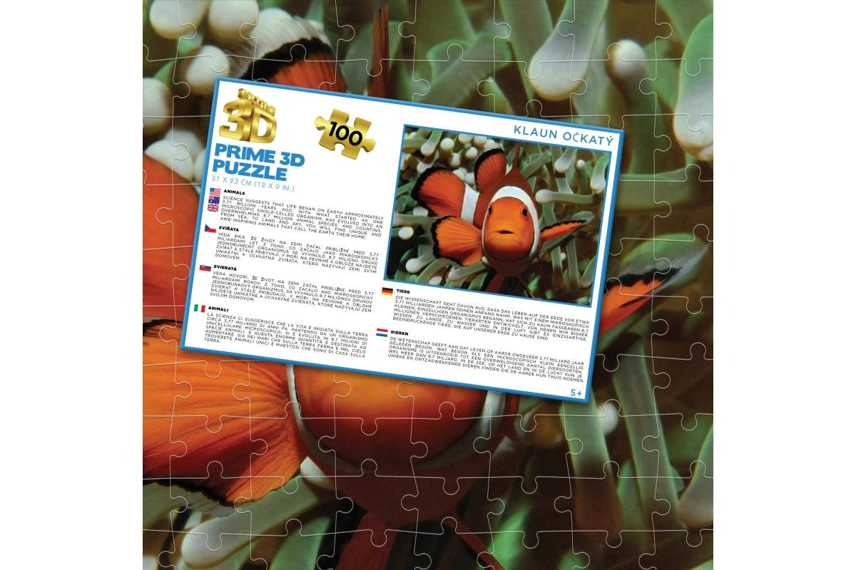 A lencserácsos 3D kép a bohóchalról mélységével és élénk színeivel nyűgöz le. Az áttekinthető doboz feltünteti a darabszámot és a méreteket a könnyű választáshoz.