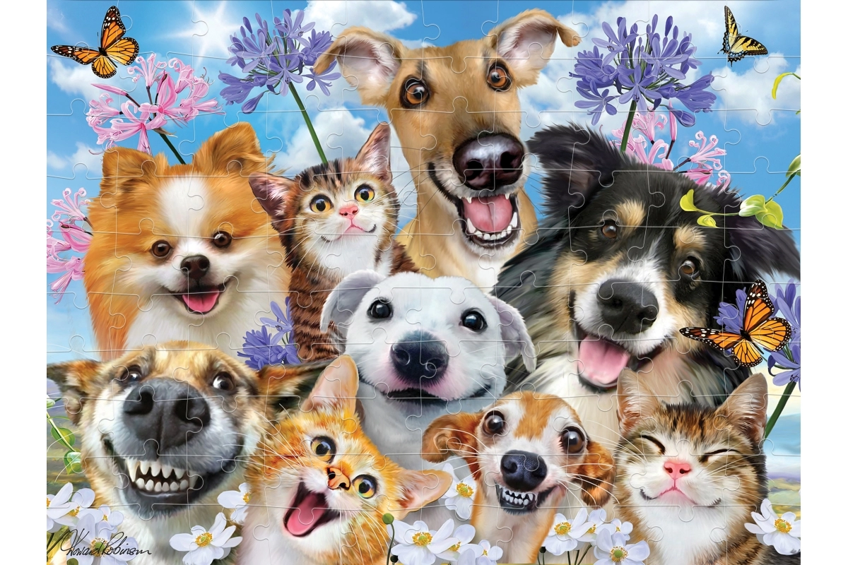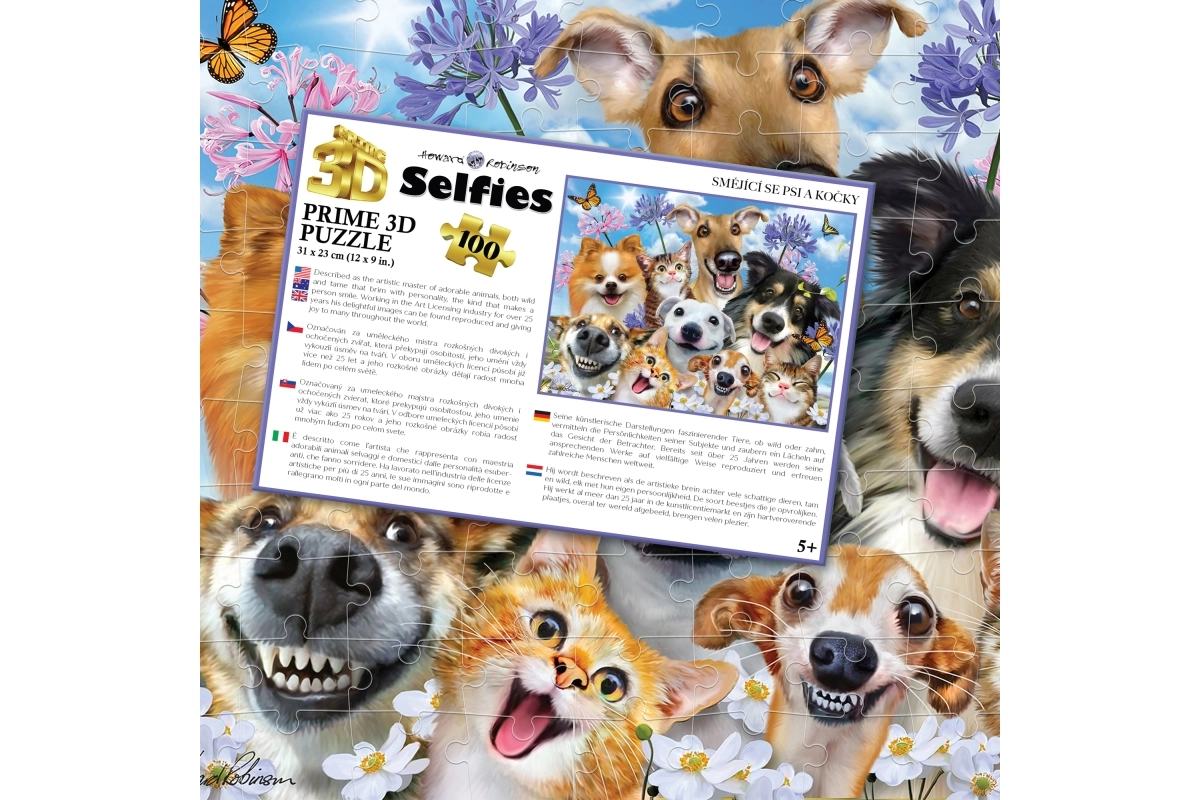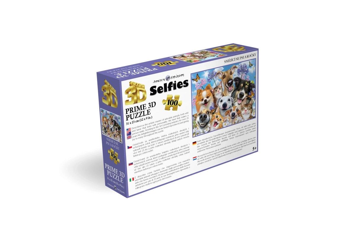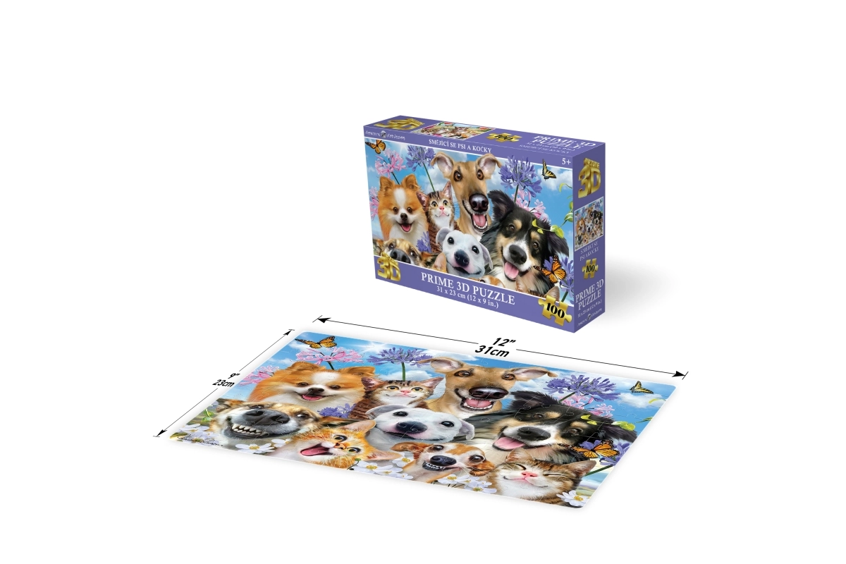 Élvezze az egész családnak szóló szórakozást a mosolygó kutyákat és macskákat ábrázoló 3D kirakóval. A 100 darabos készlet gyönyörű 3D hatást kínál, a kész kép mérete 31 × 23 cm, és ideális 5 éves kortól.
