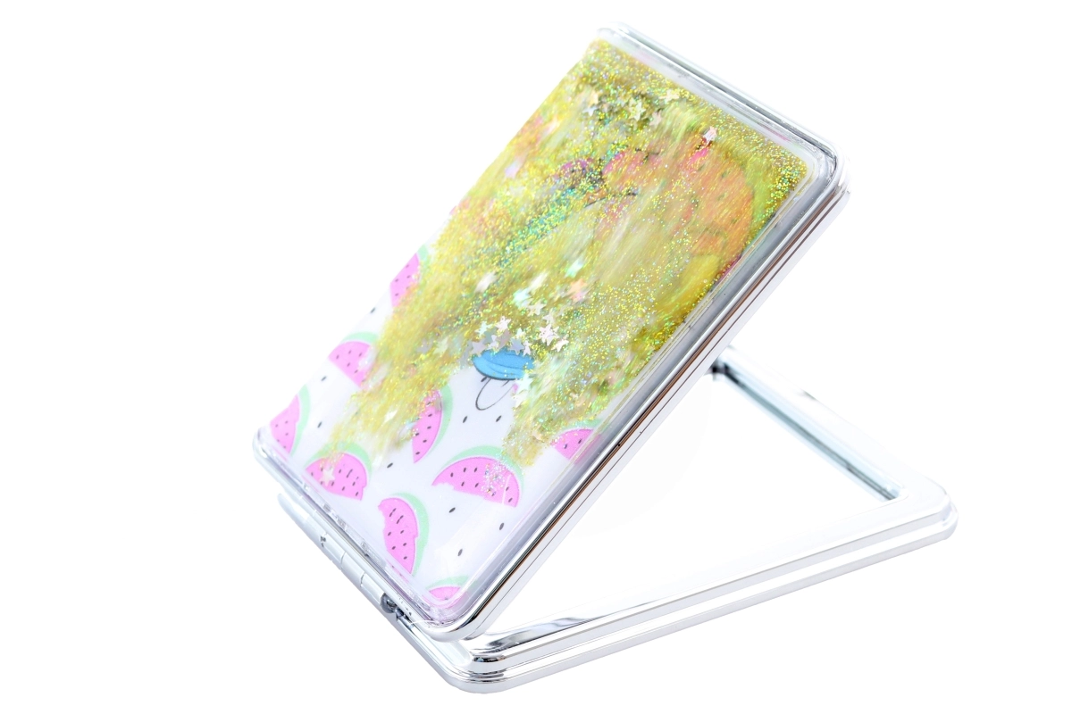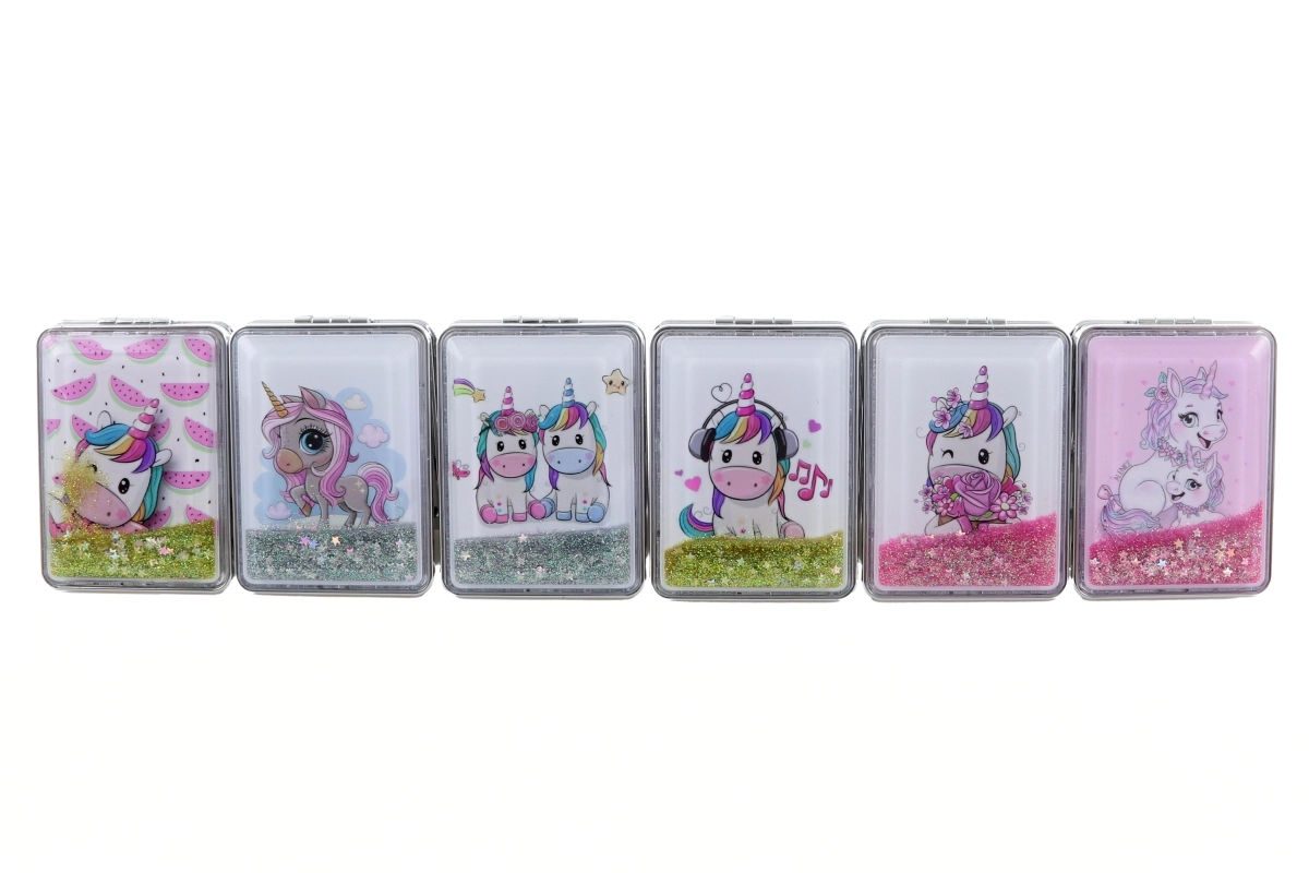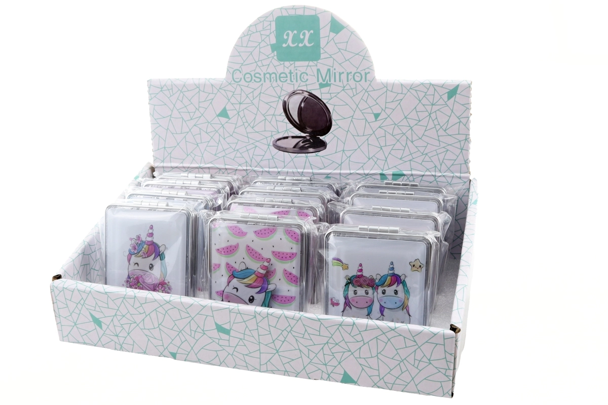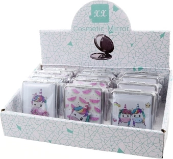 Szerezzen örömet magának ezzel a bájos és praktikus kiegészítővel. A szögletes zsebtükör egyszarvús mintával az előlapon lévő folyékony csillámokkal hívja fel magára a figyelmet, és két tükörfelületet kínál kinyitás után. Ideális gyors sminkigazításhoz útközben.