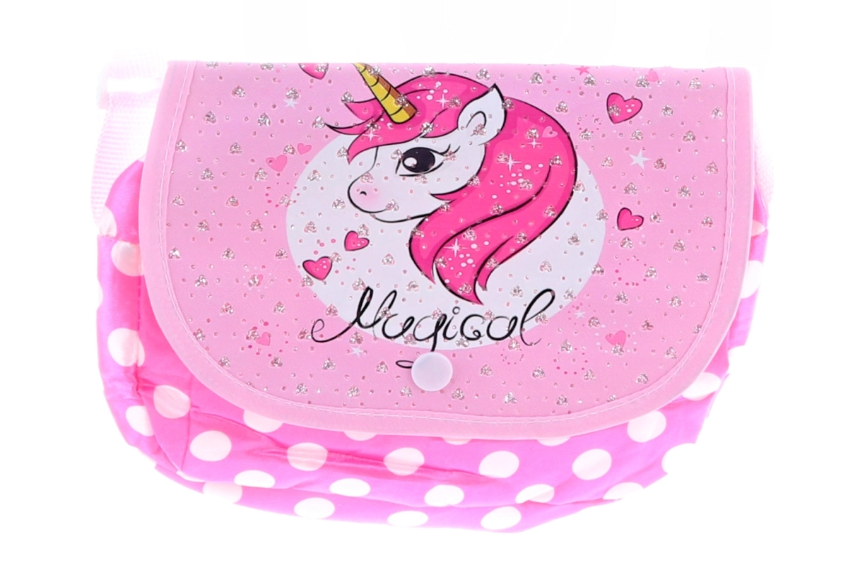 Stílusos textil válltáska varázslatos unikornis mintával, amely a fantázia és a finom dizájn kedvelőinek is örömet szerez. Praktikus méretei 19 × 15 × 2 cm, kényelmes állítható pántja legfeljebb 2 × 50 cm hosszú, és biztonságos cipzáras záródással rendelkezik. Remek választás apróságoknak, telefonnak és kulcsoknak – könnyű, kompakt és a mindennapokban praktikus.