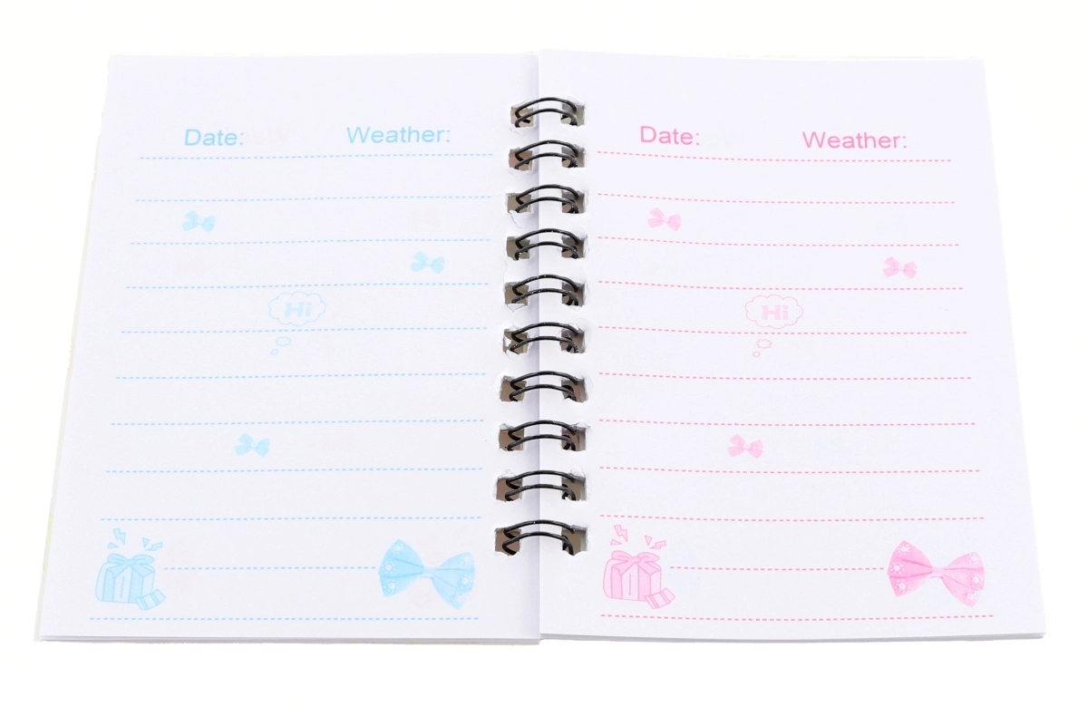 A fém spirál könnyű lapozást és laposan fekvő írást tesz lehetővé anélkül, hogy a lapok visszacsukódnának.