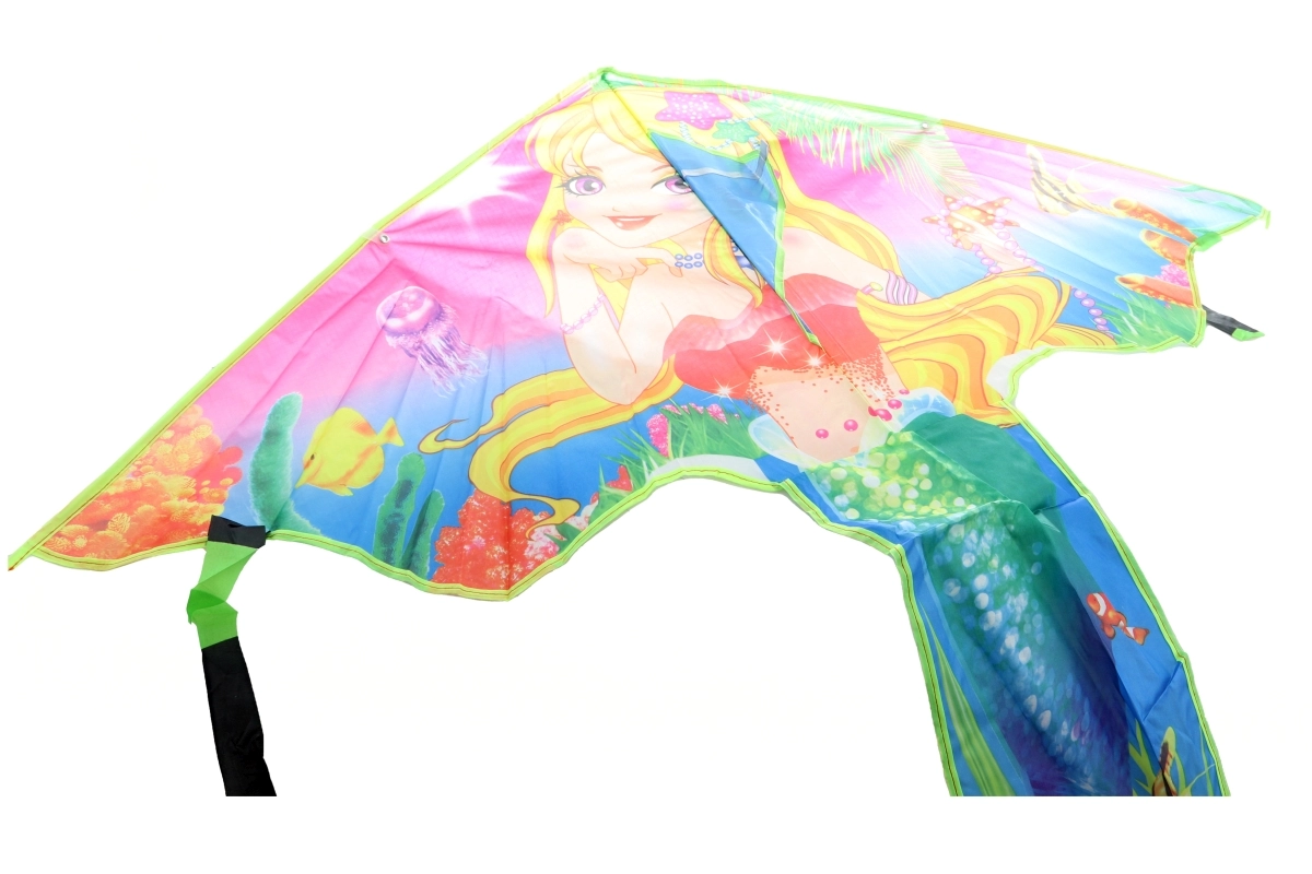 Élvezd a szelet ezzel a sellő mintás repülő sárkánnyal. A kb. 110 × 53 cm méretének köszönhetően 3 éves kortól ideális, könnyű irányíthatóságot és vidám dizájnt kínál. Tasakban csomagolva érkezik, így azonnal kicsomagolható és kész az első repülésre.