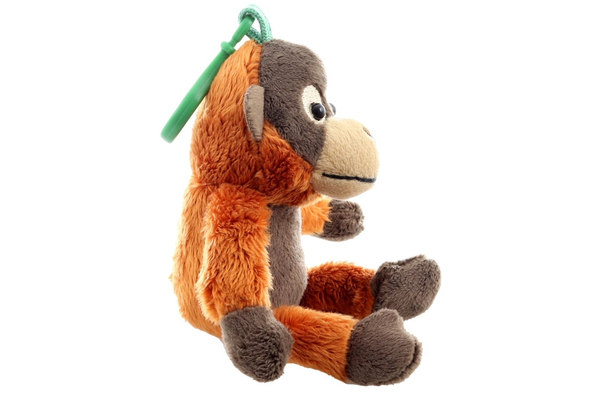 Fedezd fel a bájos kis társat, akit a gyerekek és a szülők is imádni fognak. Ez a plüss orangután puha, kellemes tapintású kivitelben készült, és praktikus zöld klippel rendelkezik, így könnyen felcsíptethető bárhová – iskolatáskához, kulcsokra vagy utazótáskához. A kompakt, 12 cm-es méretnek köszönhetően ideális útra és kisgyermek-kezekbe.