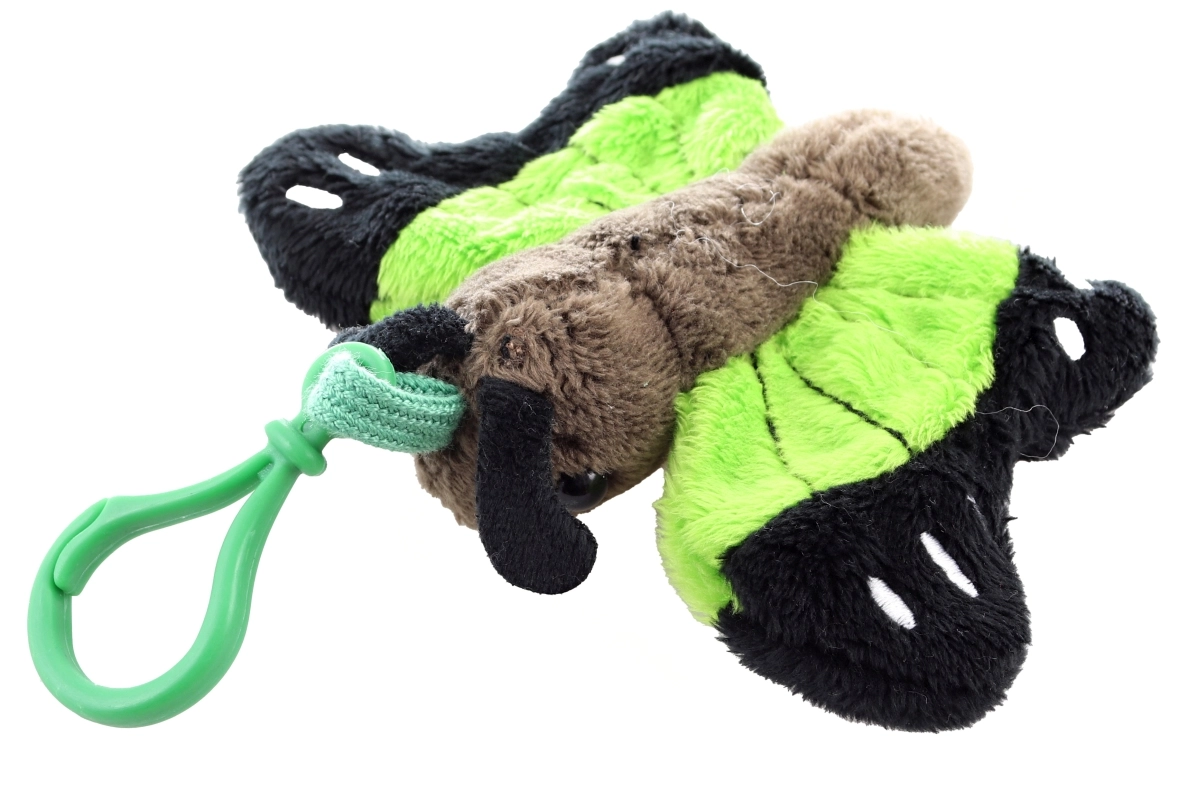 Ez a plüss pillangó kulcstartóként ötvözi a bájos megjelenést és a praktikus használatot. A puha plüss anyagnak köszönhetően kellemes fogású, míg a zöld klip/gyűrű megkönnyíti a rögzítést hátizsákra, táskára vagy kulcsokra. Minden pillangón finom szárnyrészletek és pihe-puha test gondoskodik a maximális cukiságról.