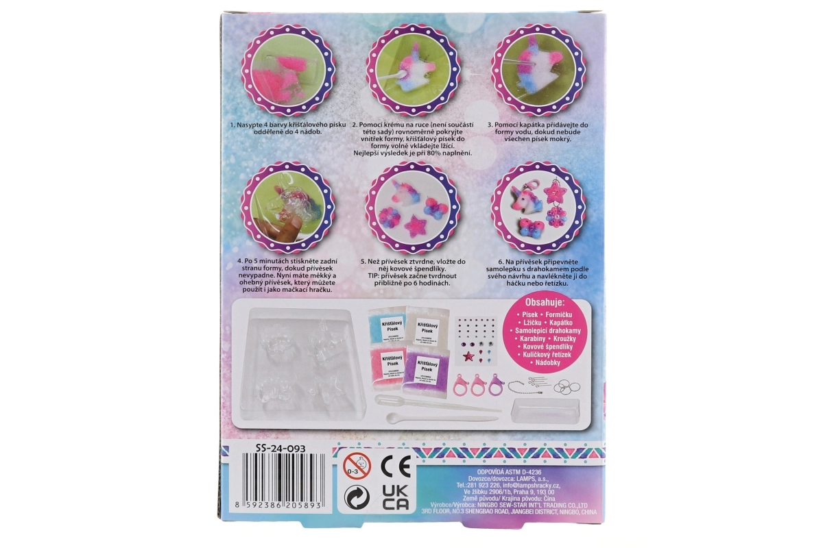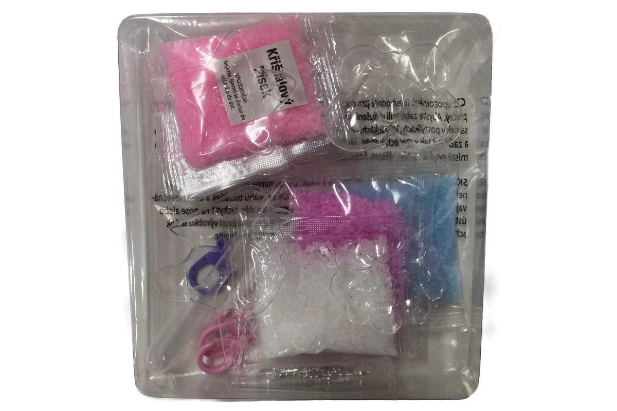 Ez a szórakoztató és könnyen használható készlet lehetővé teszi, hogy a gyerekek a saját fantáziájuk szerint készítsenek egyedi függőket. Az egyszerű, víz hozzáadásán alapuló eljárásnak és a gazdag tartozékkészletnek köszönhetően különleges kristályos díszek születnek kulcsokra, táskákra vagy ajándékba.