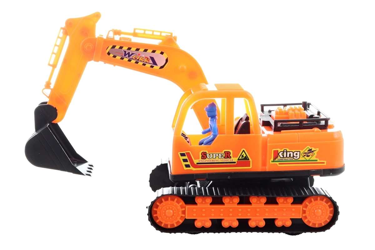 Ez a műanyag lánctalpas markoló sok szórakozást kínál a gyerekeknek építkezős és munkagépes játék közben. Bár a lánctalpak nem funkcionálisak, a jármű a szabadonfutó kerekeknek köszönhetően könnyen mozog, így ideális a gördülékeny haladáshoz különféle felületeken. A kompakt méret és a könnyű kialakítás a kisebb gyerekek számára is megkönnyíti a kezelést.
