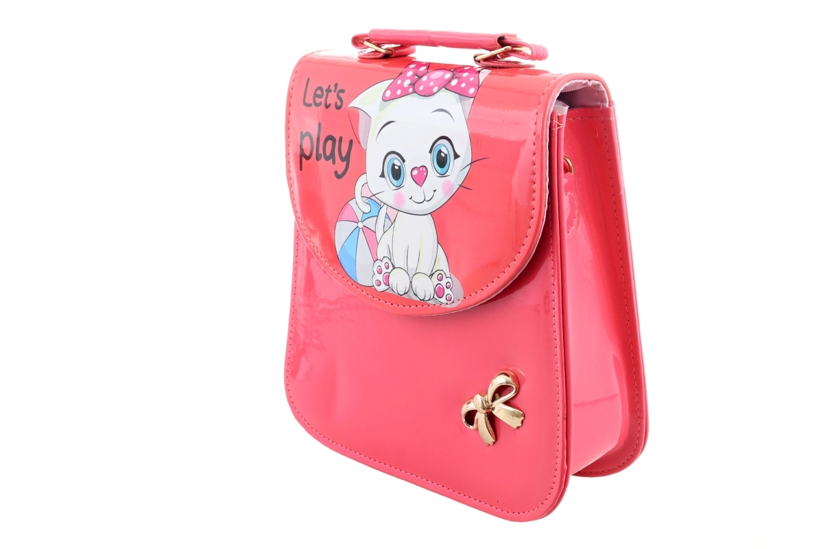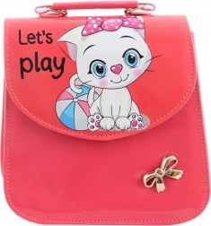 Az attraktív rózsaszín fényes felület és a „Let’s play” feliratú, bájos cica motívum első pillantásra magára vonja a figyelmet, és játékos stílust ad az outfithoz.