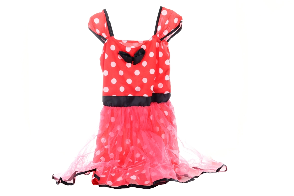 Elbűvölő, Minnie egér által inspirált jelmezes ruha, amely minden kis parádést megörvendeztet. A feltűnő piros fehér pöttyökkel, finom fekete szegélyezéssel és a nyakrésznél elhelyezett masnival párosul. A könnyű, légáteresztő anyag és a több rétegű tüllszoknya volumenes, mesés megjelenést ad.