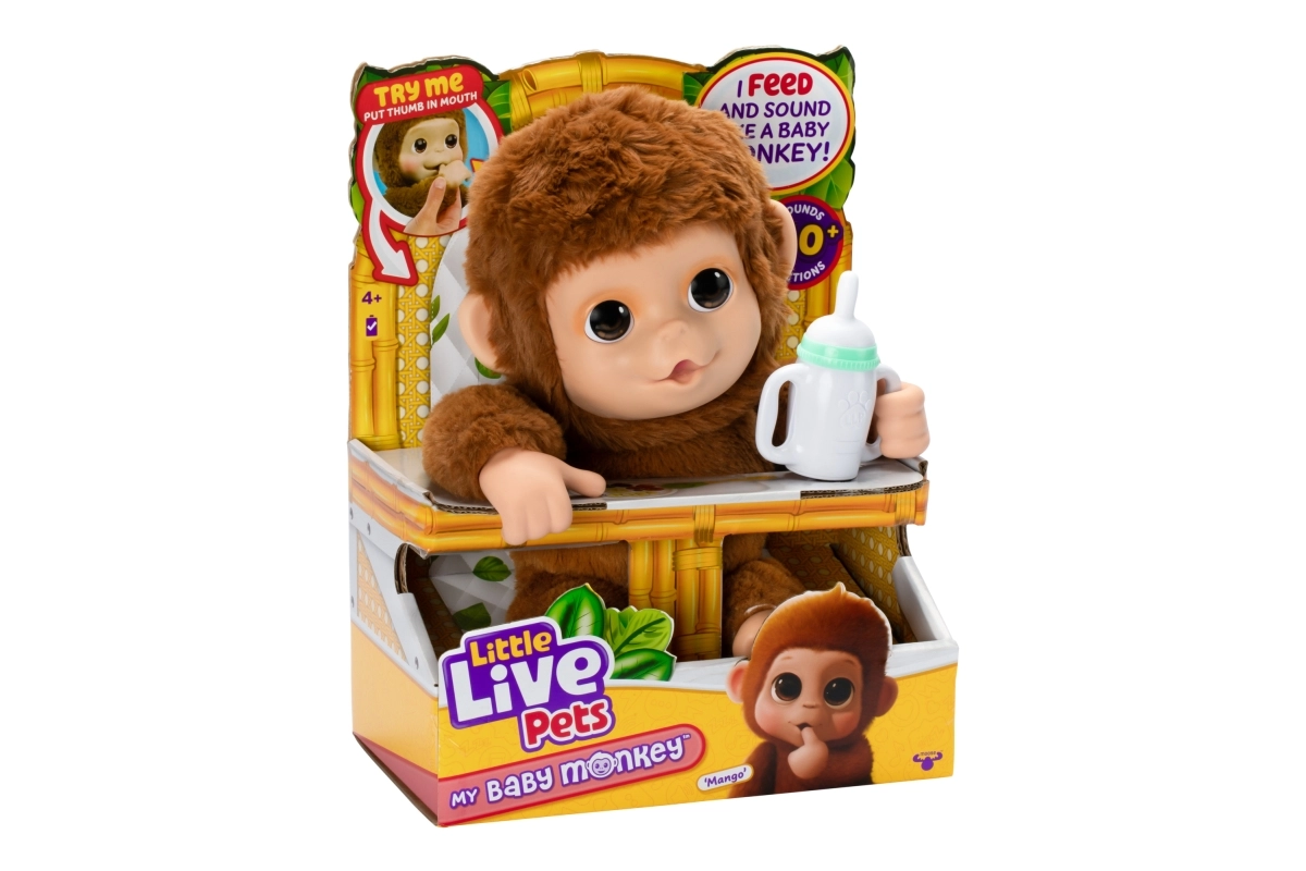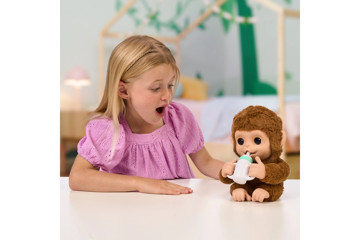 Ismerd meg az új játékpartnert – a Little Live Pets interaktív Mango kismajmát. Ez a bájos majmocska érintésre és mozgásra reagál, több mint 50 hanggal és reakcióval lep meg, tud mászni, fejjel lefelé lógni, és élethűen mozgó arca varázslatot visz minden játékba. Pihe-puha tapintású, imádja az ölelést, cumisüveggel etethető, vagy szopizhatja a hüvelykujját – tökéletes társ a kreatív játékhoz.