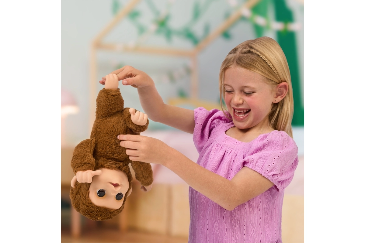A plüss test és a kifejező arc ölelésre csábít. A kismajom tud fejjel lefelé lógni, és szórakoztatja a gyerekeket az aktív és a nyugodt játék során is.
