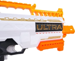 A Nerf Ultra Dorado gyors és megbízható félautomata pisztoly minden 8 évesnél idősebb kis és nagy lövész számára. A 6 nyilat befogadó nyitott dob villámgyors lőszerpótlást tesz lehetővé, míg az elemes, motoros meghajtás egyenletes és fürge lövést biztosít.