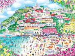 - Olasz tengerpart motívum – színes, részletgazdag illusztráció nyári hangulattal.
