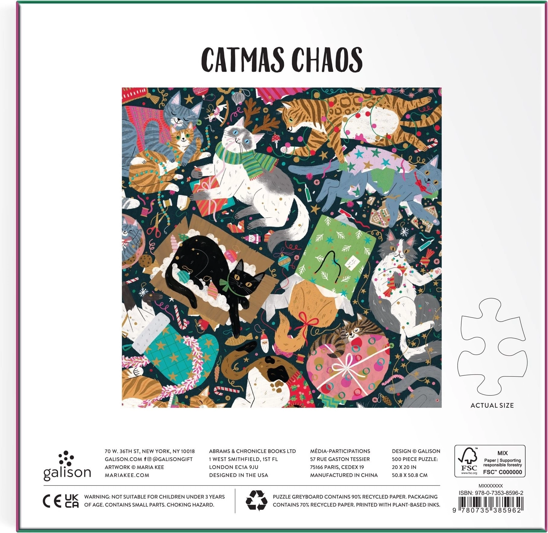Élvezd az elegáns fémes hatású kirakózást: a macskás karácsonyi káosz témájú, négyzet alakú puzzle 500 darabbal, minőségi kivitelben és a csomagban található motívum-útmutatóval érkezik. A kész kép mérete 50,8 × 50,8 cm, és remekül mutat dekorációként vagy ajándékként macska- és karácsonyrajongóknak.