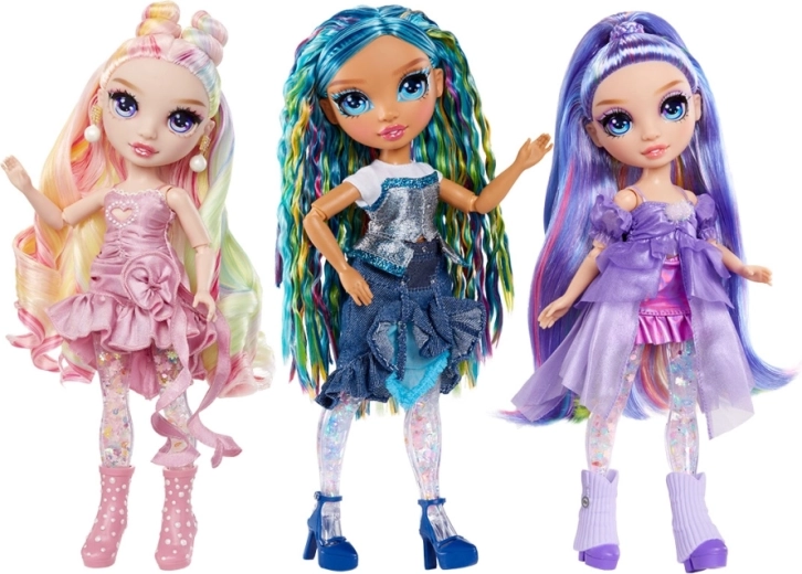 A csomag része egy aranyos, varázslatos kisállat szárnyakkal és szarvval, egy fésű és egy teljes outfit. A gyerekek összegyűjthetik a sorozat szereplőit – Iris (Szivárvány), Bella (Rózsaszín), Skyler (Kék) és Violet (Lila) – és inspirálódhatnak a Rainbow High új epizódjaiból a YouTube-on vagy a Netflixen.