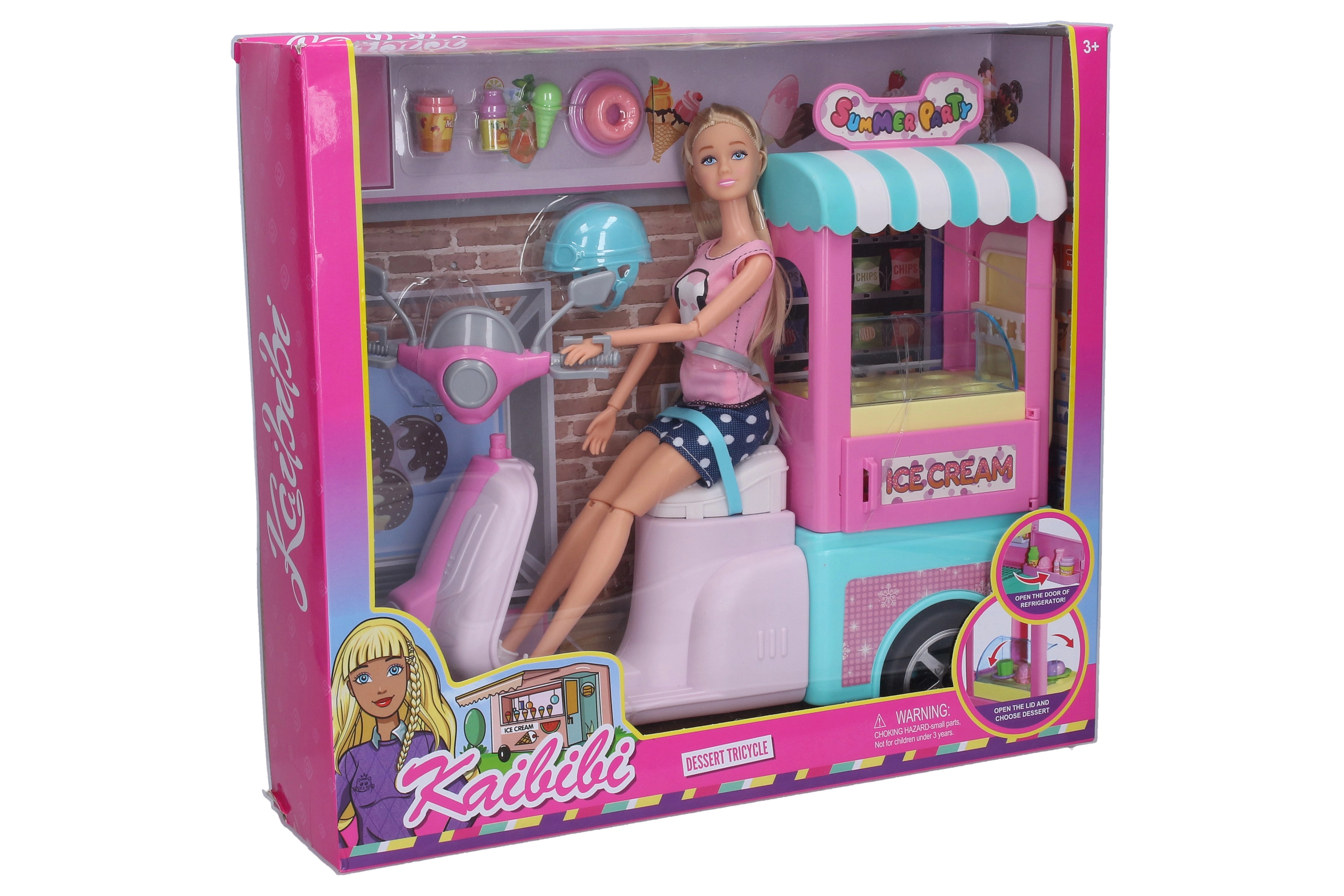 - Komplett szett: baba, fagylaltárus robogó, sisak és tematikus kiegészítők.