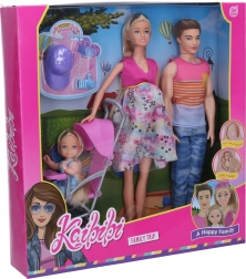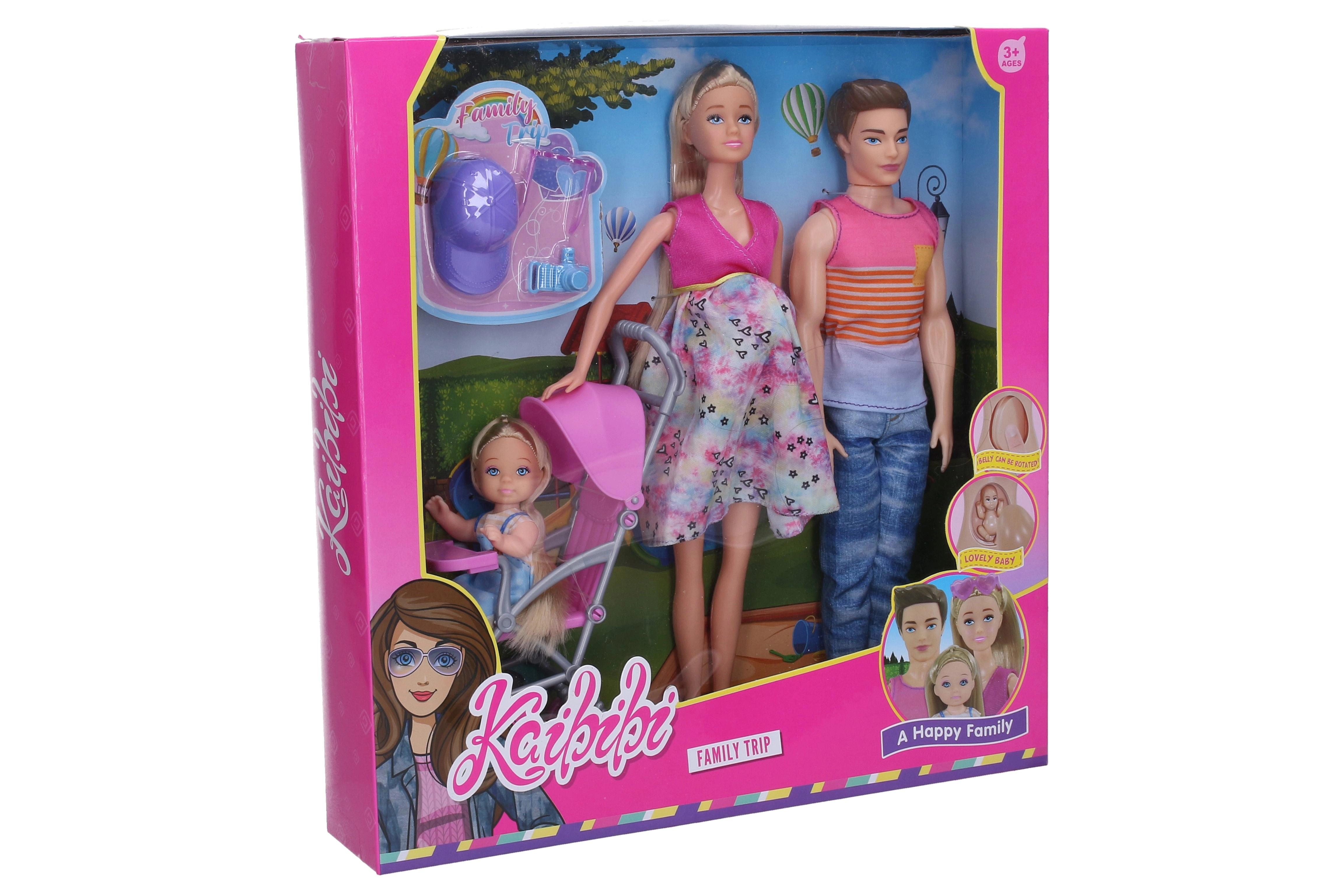 Ez a családi szett örömet szerez a gyerekeknek, akik szeretnek történeteket mesélni. A fő baba cserélhető hassal rendelkezik – egyszerűen elforgatható lapos vagy várandós állásba, a babát pedig biztonságosan ki lehet venni. A férjjel, a kislánnyal, a babakocsival és a kiegészítőkkel együtt lehetőséget ad a babavárás, a gondoskodás és a közös családi pillanatok eljátszására.