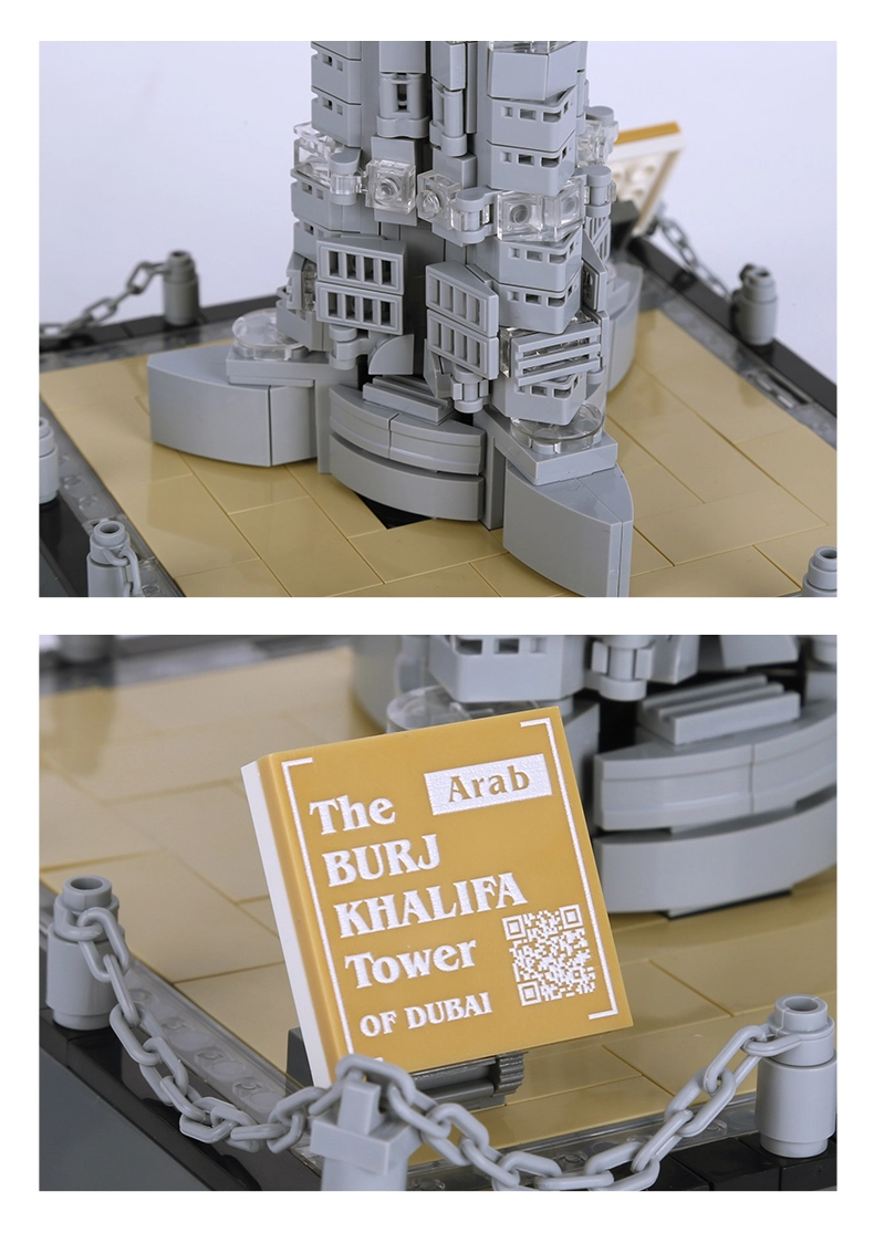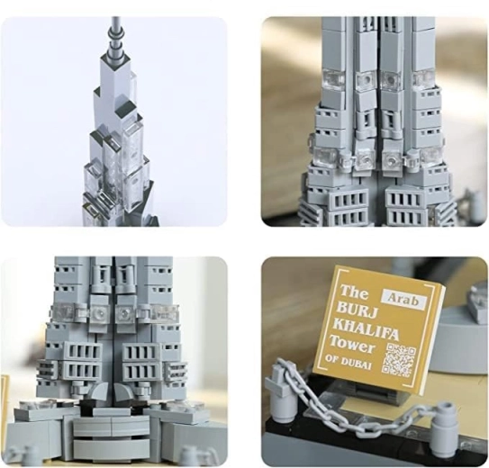 Az épületsorozat ezen készlete lehetővé teszi, hogy megépítse Dubaj híres jelképét – a BURJ KHALIFÁT. A 555 elemmel stabil és valósághű modell készül, amely jól mutat a polcon vagy az íróasztalon. Az egyszerű, képes útmutató megkönnyíti a lépésről lépésre történő építést.