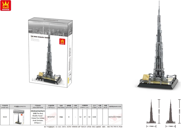 Fedezze fel a BURJ KHALIFA ikonikus felhőkarcoló sziluettjét 6 éves kortól ajánlott építőkészletben. A szett 555 darab kiváló minőségű műanyag elemet tartalmaz, stabil és tartós szerkezetet kínál, és remek ajándék a kicsiknek és nagyoknak egyaránt, akik rajonganak az építészetért.