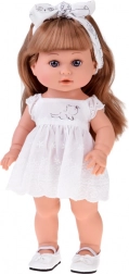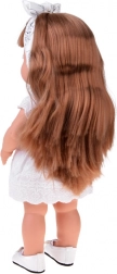 Ez a stílusos baba remek játszótárs a mindennapokra. A hosszú, dús hajnak és a mellékelt hajkefének köszönhetően a gyerekek élvezhetik a fésülést, fonást és formázást. A csipkés részletekkel díszített elegáns öltözet, a fehér cipők és a masnis hajpánt kiemelik a baba modern megjelenését.