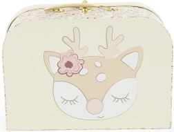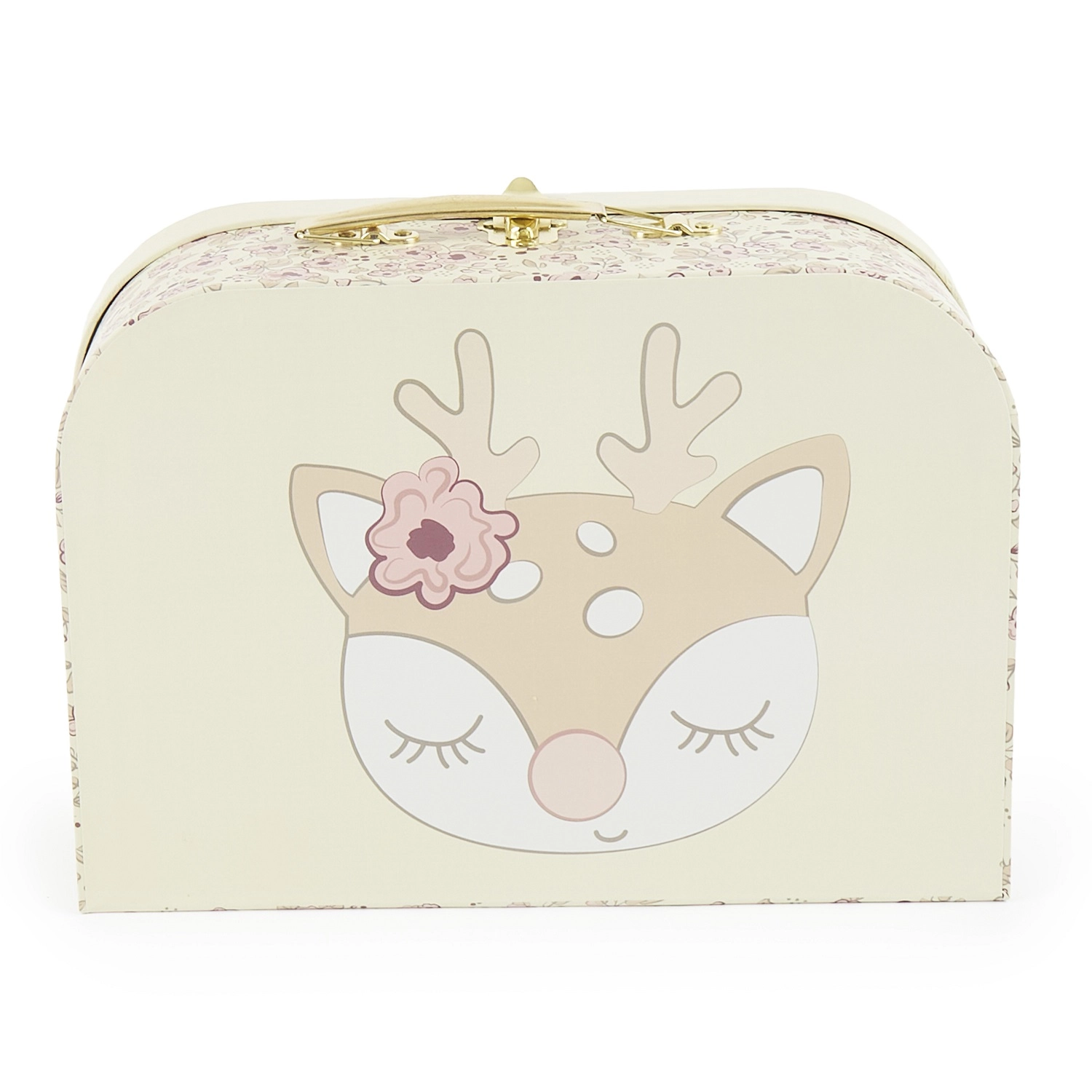 Stílusos, háromdarabos karton bőröndszett, amely feldobja a gyerekszobát és az utazást is. Ötvözi a cukiságos Ella őzike motívumot, a vintage virágmintát, a masszív fémcsatot és a kényelmes fogantyút. A behelyezhető (nesting) kialakításnak köszönhetően a bőröndök helytakarékosak, könnyűek, és ideálisak kincsek, játékok és apróságok tárolására.