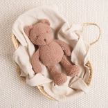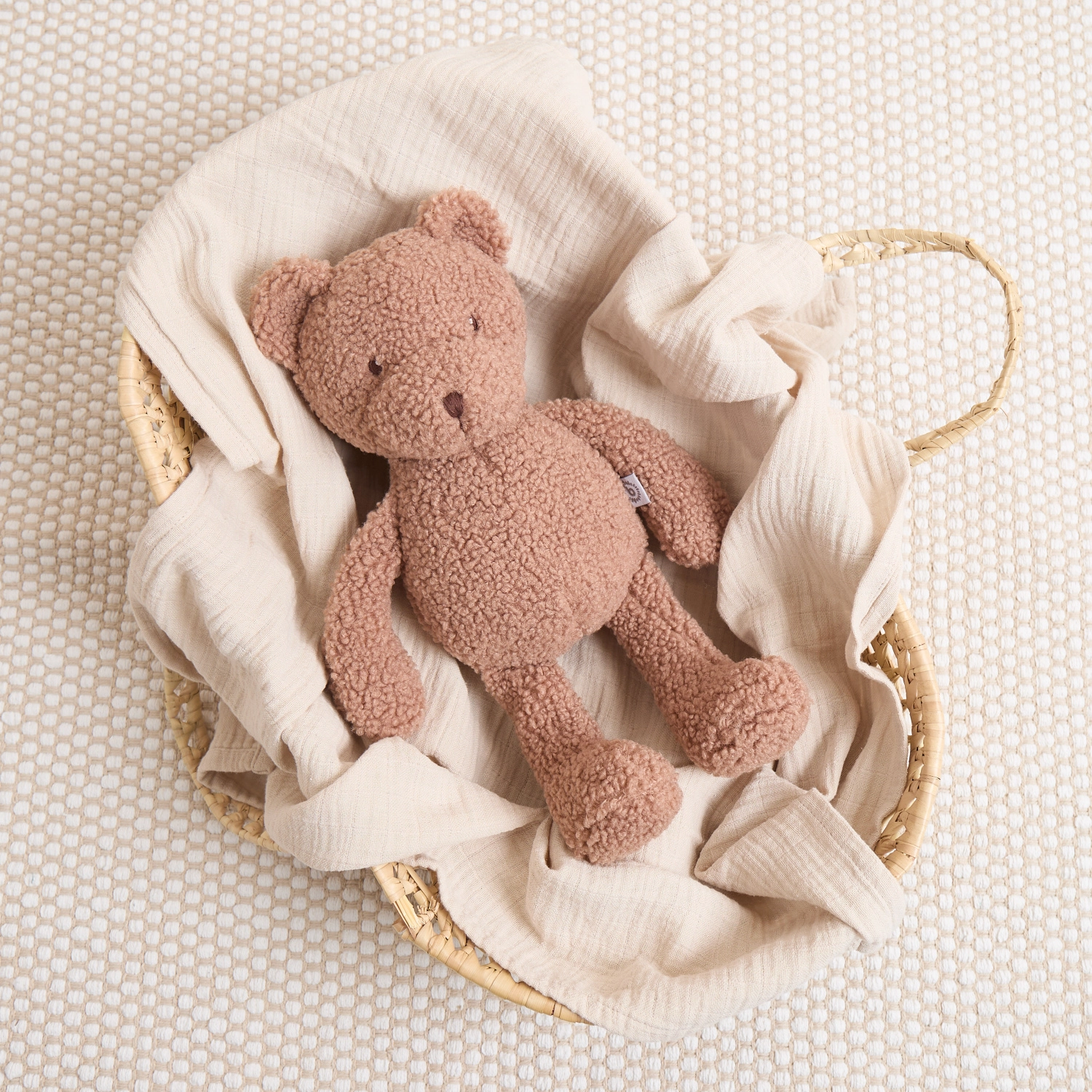 A bolyhos, csokoládébarnára színezett felület gyengéd a bababőrhöz és egyenesen hívogat az ölelésre.