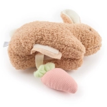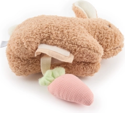 A nyuszi pocakjában található kivehető répácska finoman zizeg nyomásra, és arra ösztönzi a babát, hogy felfedezzen, megfogjon és újra meg újra rácsodálkozzon.