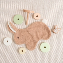 A puha, ölelni való nyuszi alakú muchláček gyorsan a baba kedvenc társává válik. A selymes felület kellemes tapintású, a textúrált anyag és a susogó elemek támogatják az érzékek fejlődését és a gyermek természetes kíváncsiságát. Könnyű felépítésének köszönhetően a legkisebb kezek is könnyen megfogják.