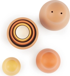Ez a 4 darabos matrijoska készlet 7 elemmel egyszerű és okos kialakításával nyeri el a gyerekek tetszését. Az elemek könnyen egymásba helyezhetők, ami természetes módon fejleszti a kéz–szem koordinációt és a méretérzékelést. A szilikon kivitel kellemesen puha, ugyanakkor tartós – ideális a mindennapi játékhoz.