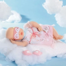 Ezzel az éjszakai hálóinggel Baby Annabell úgy érzi magát, mintha egy felhőn lenne. A tüll felső szoknyácskának és vidám bárány mintáknak köszönhetően a babád örömmel fog elaludni minden este. Az esti rituálét cuki alvómaszk és könnyen levehető papucsok kísérik.