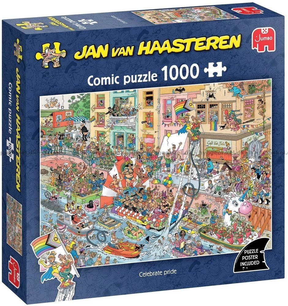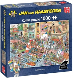 Fedezze fel a humort és részleteket rejtő világot. Jan van Haasteren puzzle-jei összetéveszthetetlen stílusukról híresek – nyüzsgő jelenetek, rengeteg szereplő és váratlan poénok minden sarokban. Minden kirakás új felfedezéseket és garantált mosolyt hoz.