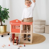 Változtasd a gyerekszobát akciódús mentőközponttá! Ez a masszív fa tűzoltóállomás két szintes, helikopter-leszállóval és tűzoltórúddal. A készlethez tartoznak hajlítható figurák, egy tűzoltóautó és sok kiegészítő. Az igazi hangulatot a fény- és hangmodul szirénával, a működő helikoptercsörlő és a nyitott kialakítás a könnyű hozzáférésért teremti meg. A játék fejleszti a finommotorikát, a képzelőerőt és a szociális készségeket.